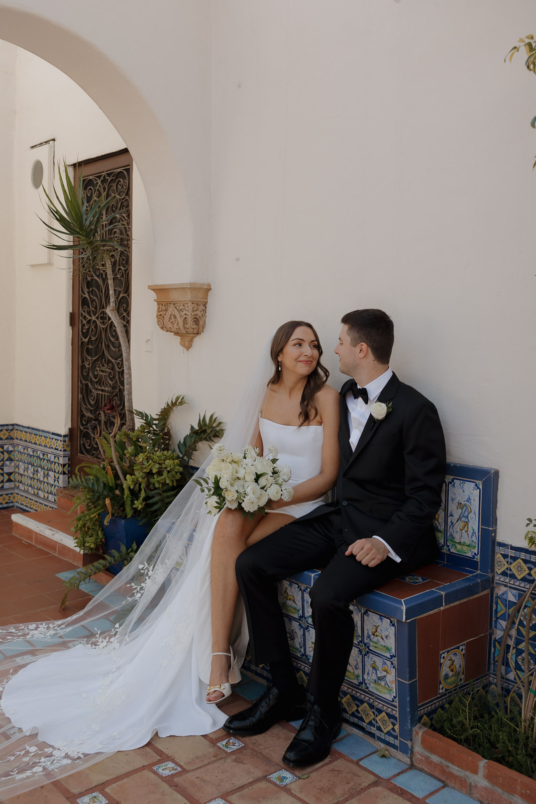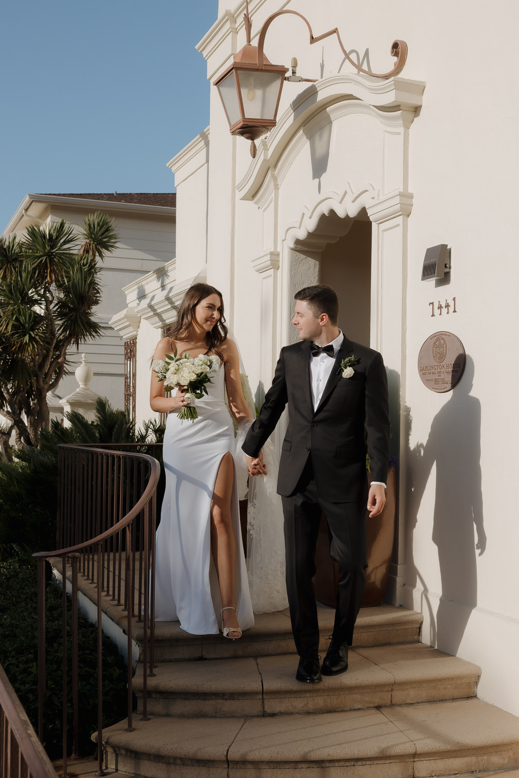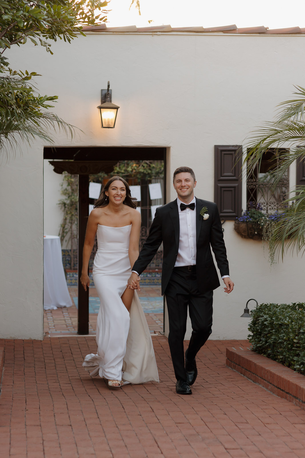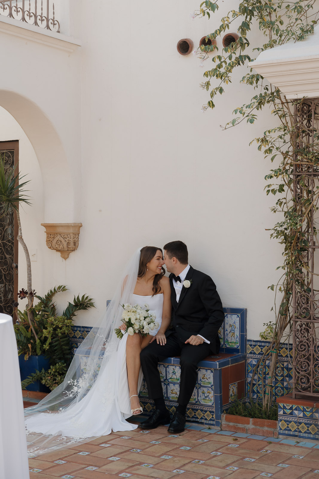 After they got engaged, they knew one thing for certain: they wanted to get married outdoors – ideally somewhere they could slip away to the beach, just like on some of their favorite dates. Darlington House in La Jolla felt like it was made for them. Just one block from the beach, this historic estate offers a charming blend of Mediterranean and Spanish architecture, with lush gardens, vine-covered walls, and elegant courtyards that transport you to another place and time. I love it so much that I chose it as my own wedding venue afterwards!!