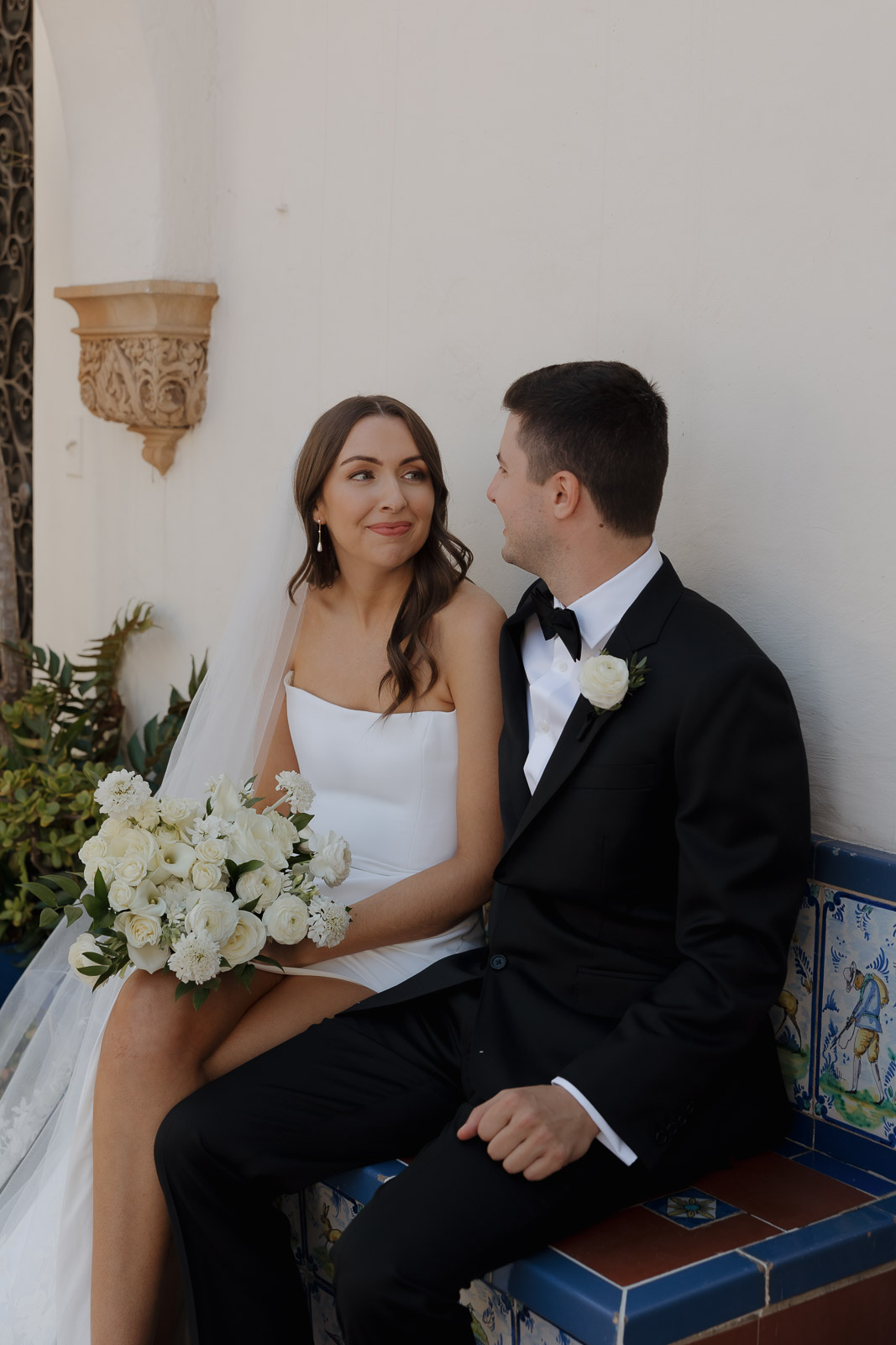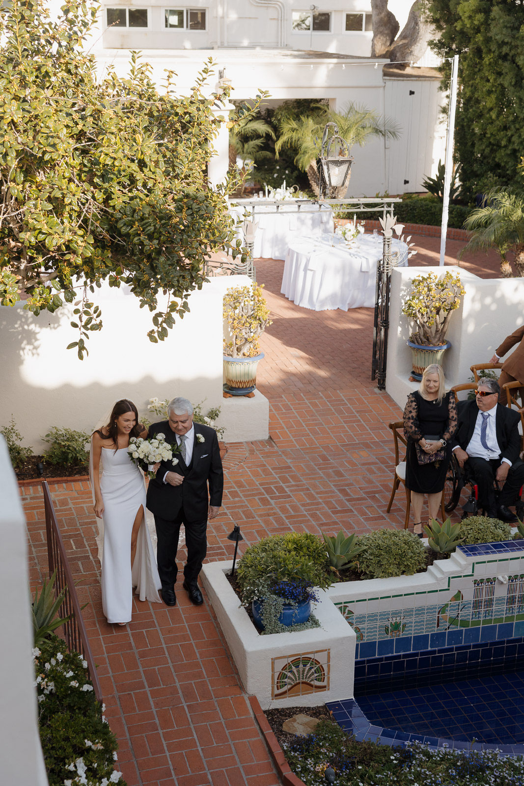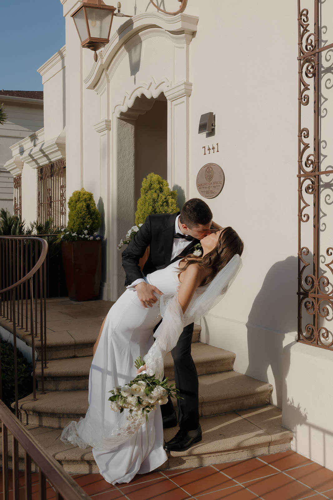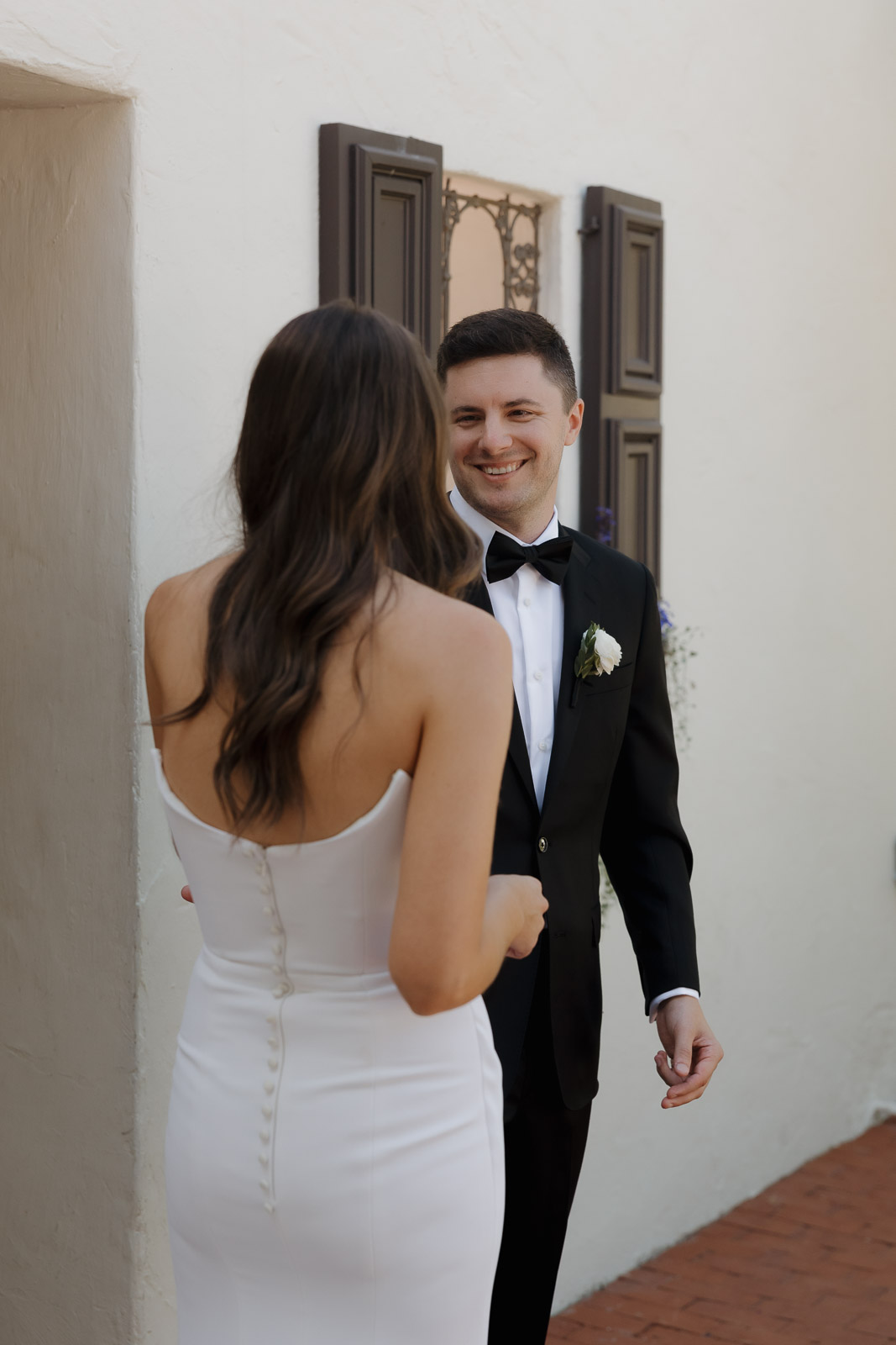 After they got engaged, they knew one thing for certain: they wanted to get married outdoors – ideally somewhere they could slip away to the beach, just like on some of their favorite dates. Darlington House in La Jolla felt like it was made for them. Just one block from the beach, this historic estate offers a charming blend of Mediterranean and Spanish architecture, with lush gardens, vine-covered walls, and elegant courtyards that transport you to another place and time. I love it so much that I chose it as my own wedding venue afterwards!!