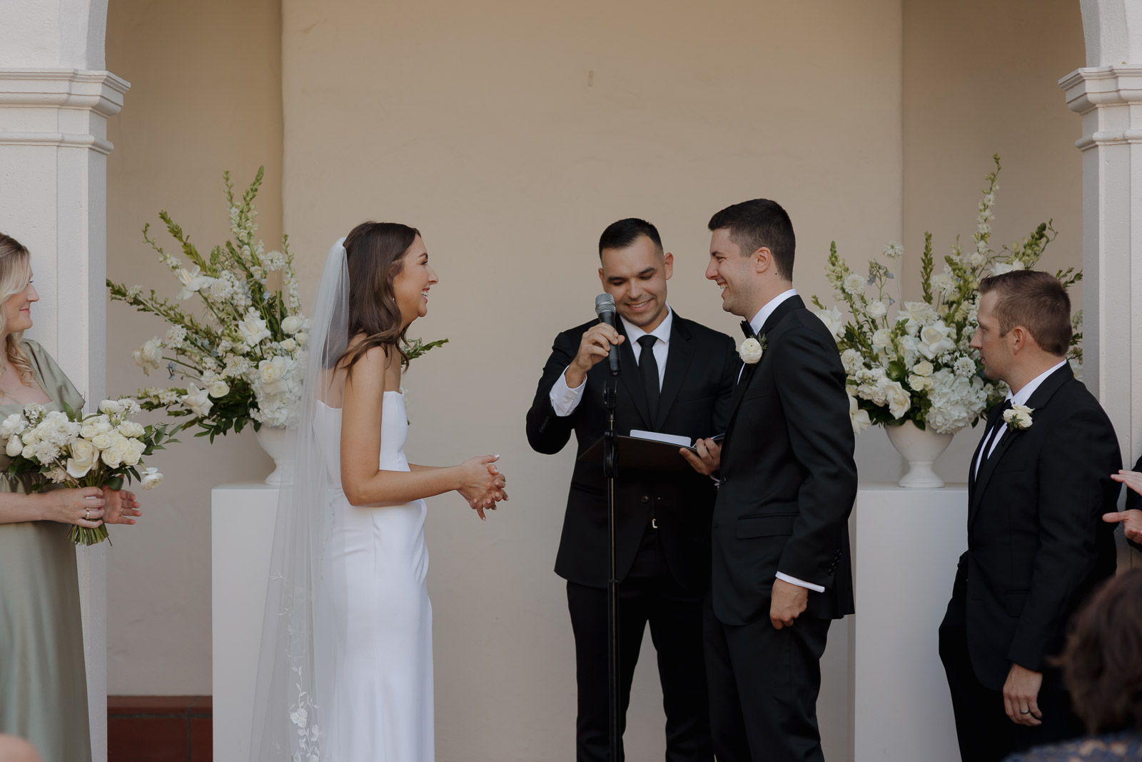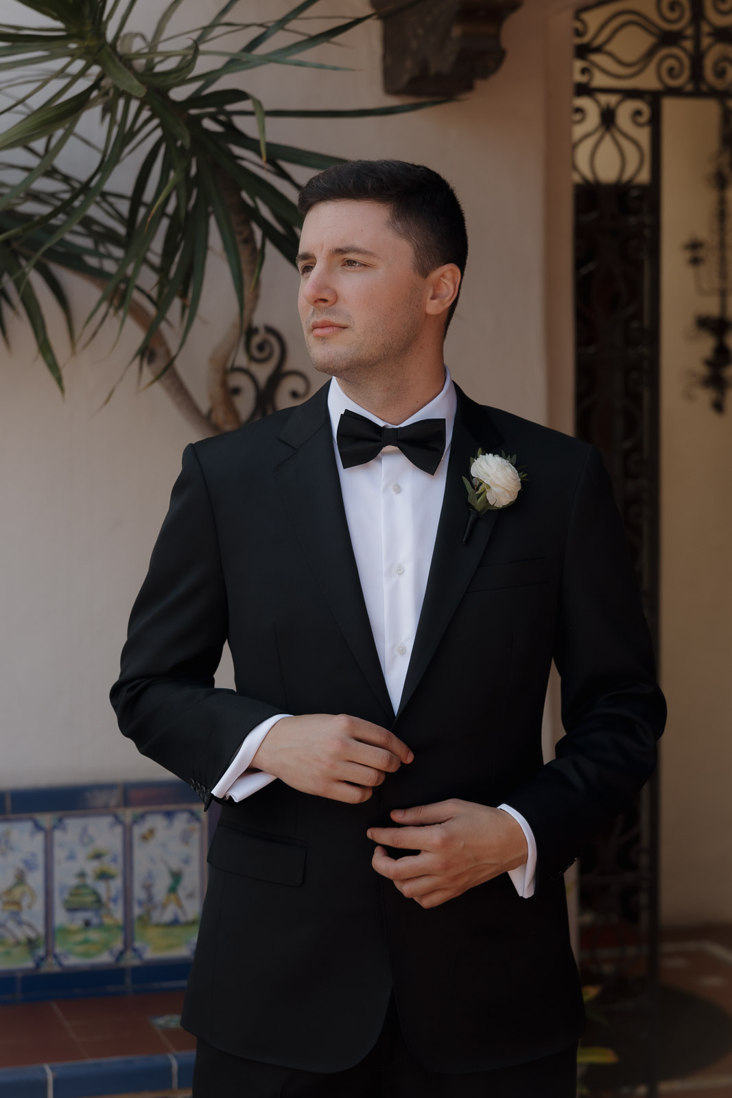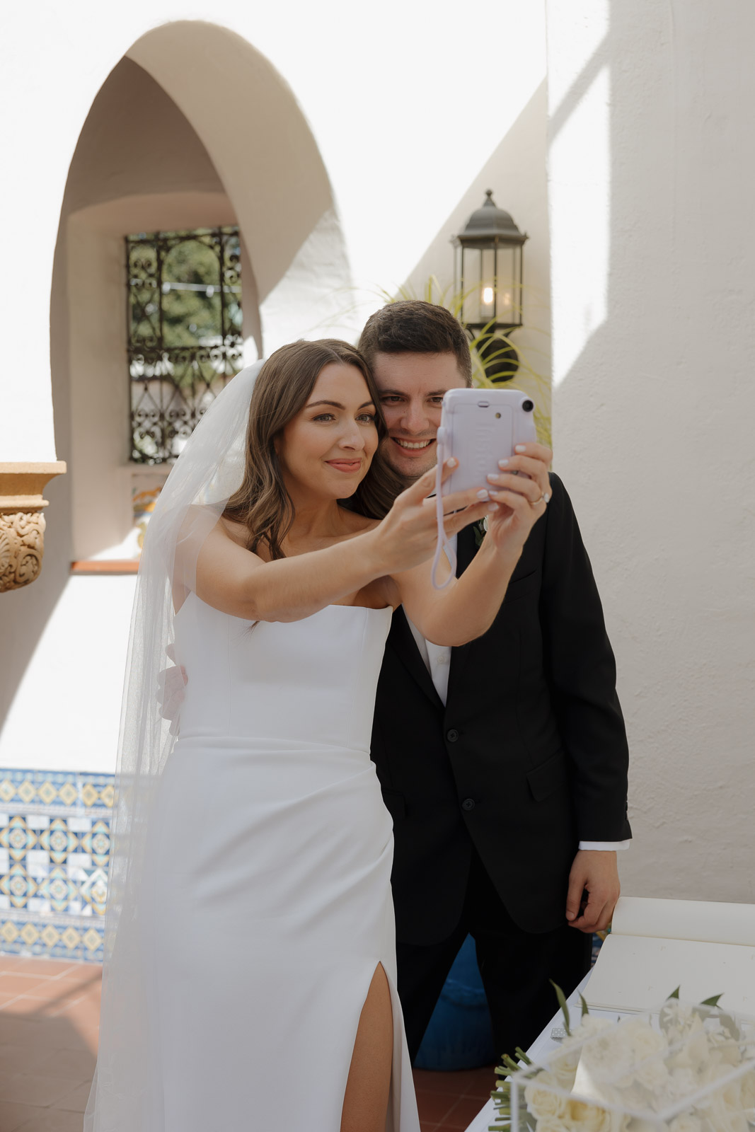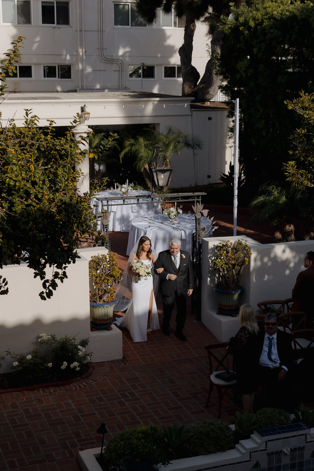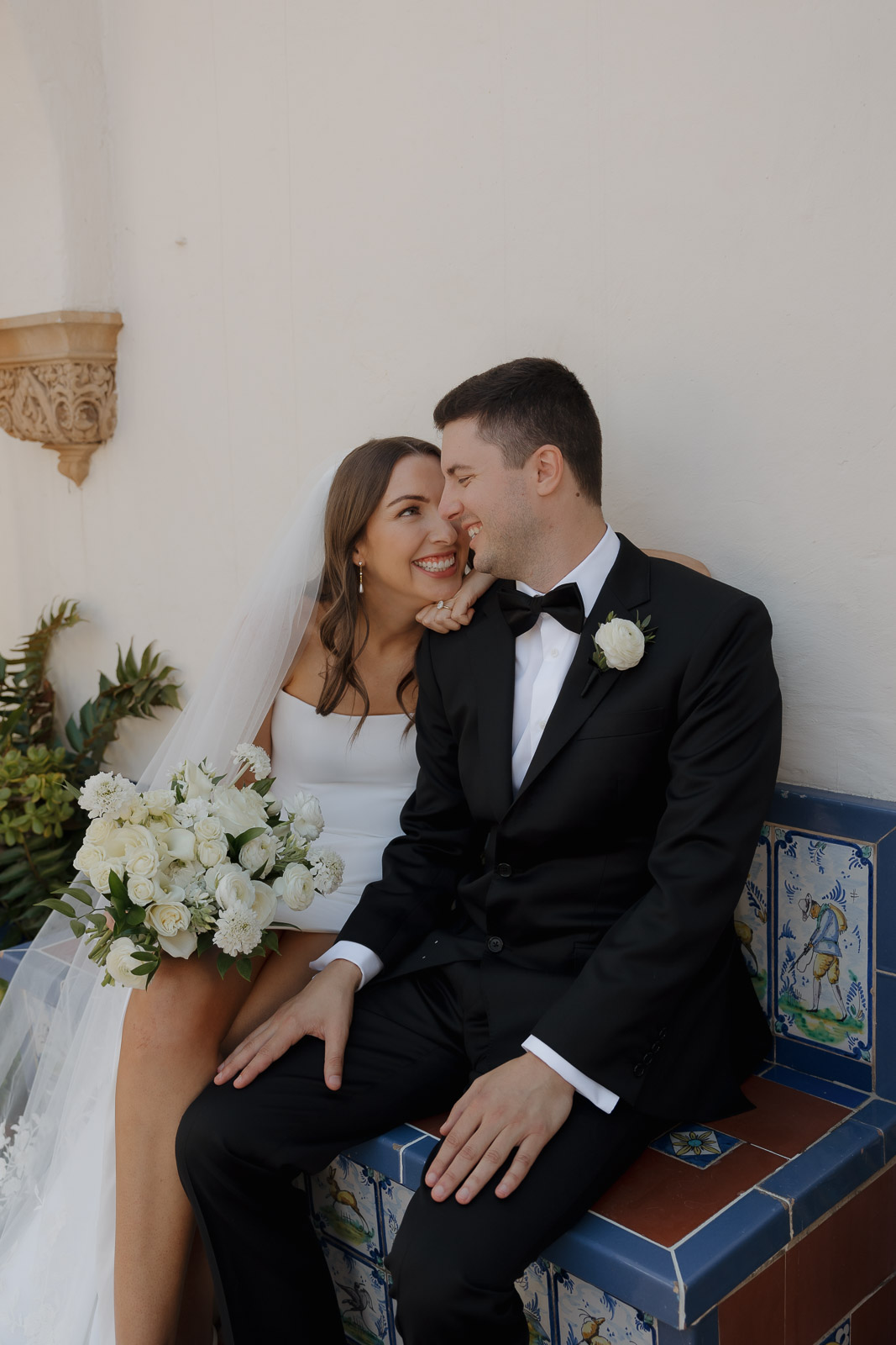 After they got engaged, they knew one thing for certain: they wanted to get married outdoors – ideally somewhere they could slip away to the beach, just like on some of their favorite dates. Darlington House in La Jolla felt like it was made for them. Just one block from the beach, this historic estate offers a charming blend of Mediterranean and Spanish architecture, with lush gardens, vine-covered walls, and elegant courtyards that transport you to another place and time. I love it so much that I chose it as my own wedding venue afterwards!!