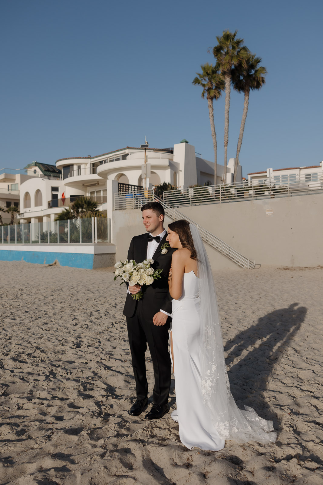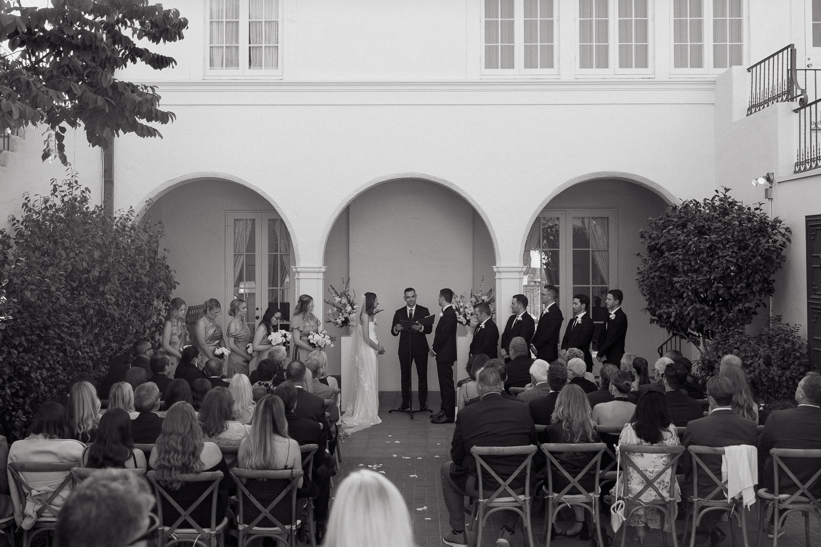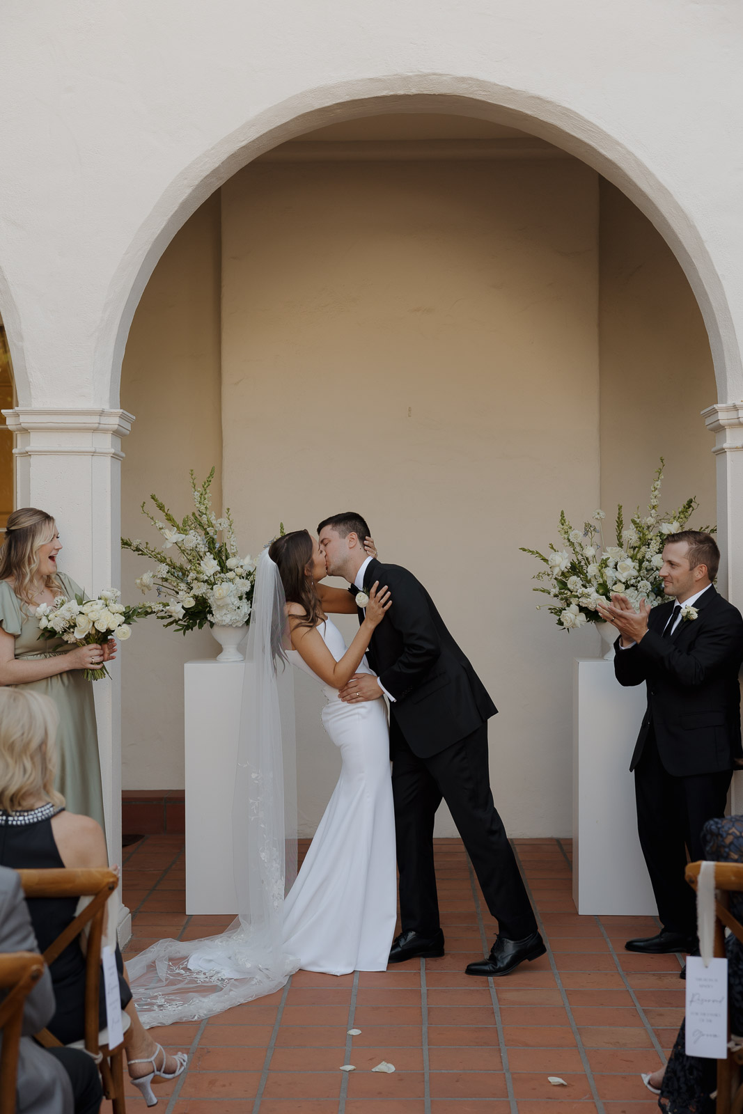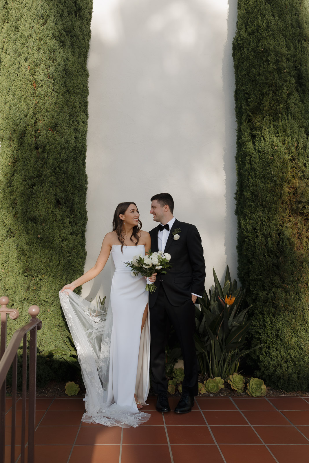 After they got engaged, they knew one thing for certain: they wanted to get married outdoors – ideally somewhere they could slip away to the beach, just like on some of their favorite dates. Darlington House in La Jolla felt like it was made for them. Just one block from the beach, this historic estate offers a charming blend of Mediterranean and Spanish architecture, with lush gardens, vine-covered walls, and elegant courtyards that transport you to another place and time. I love it so much that I chose it as my own wedding venue afterwards!!