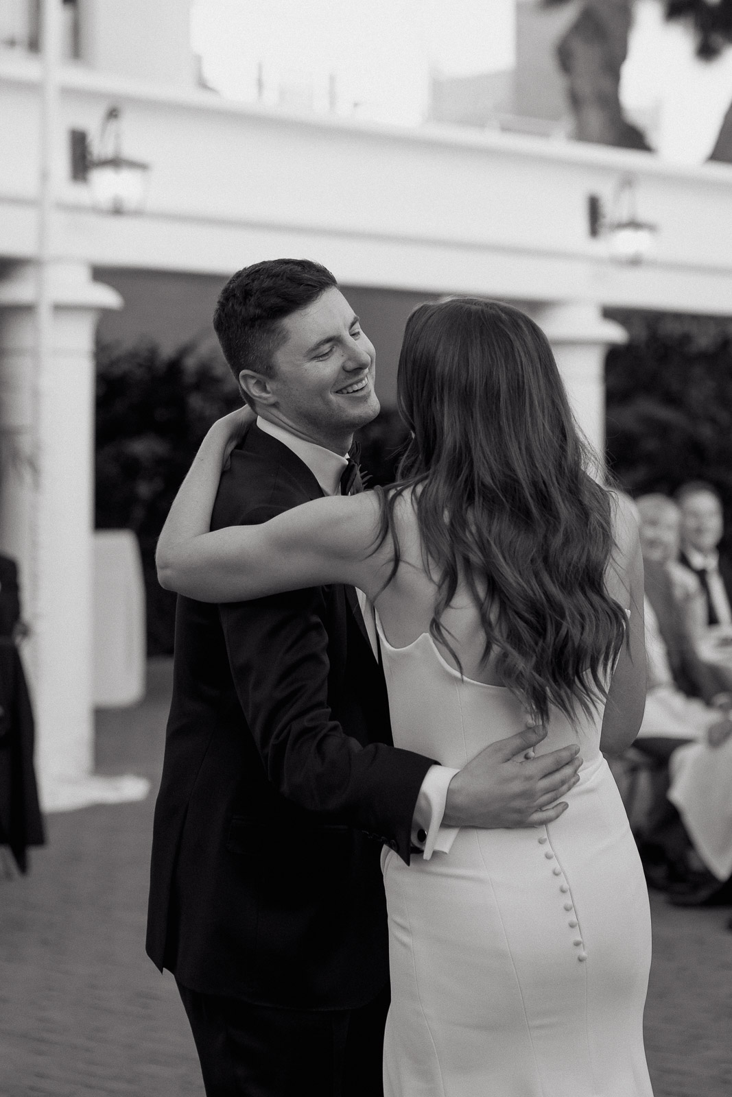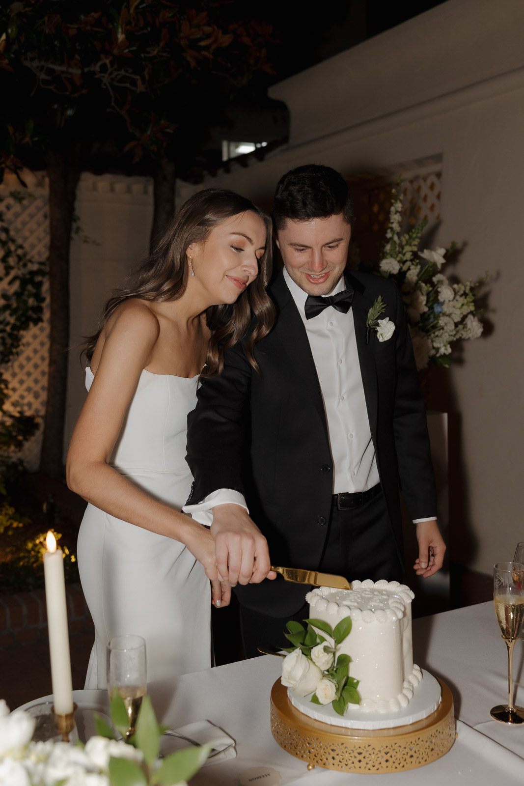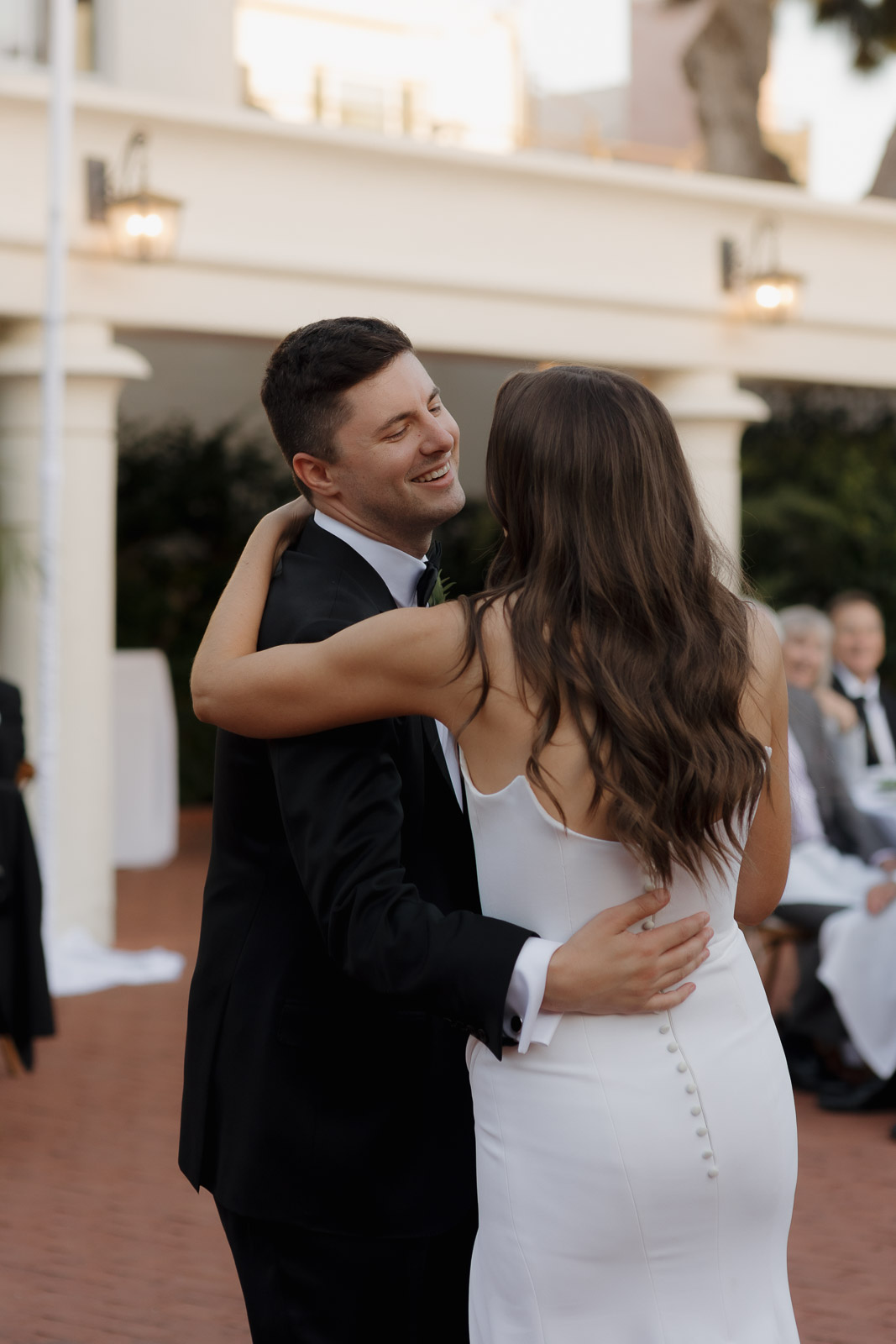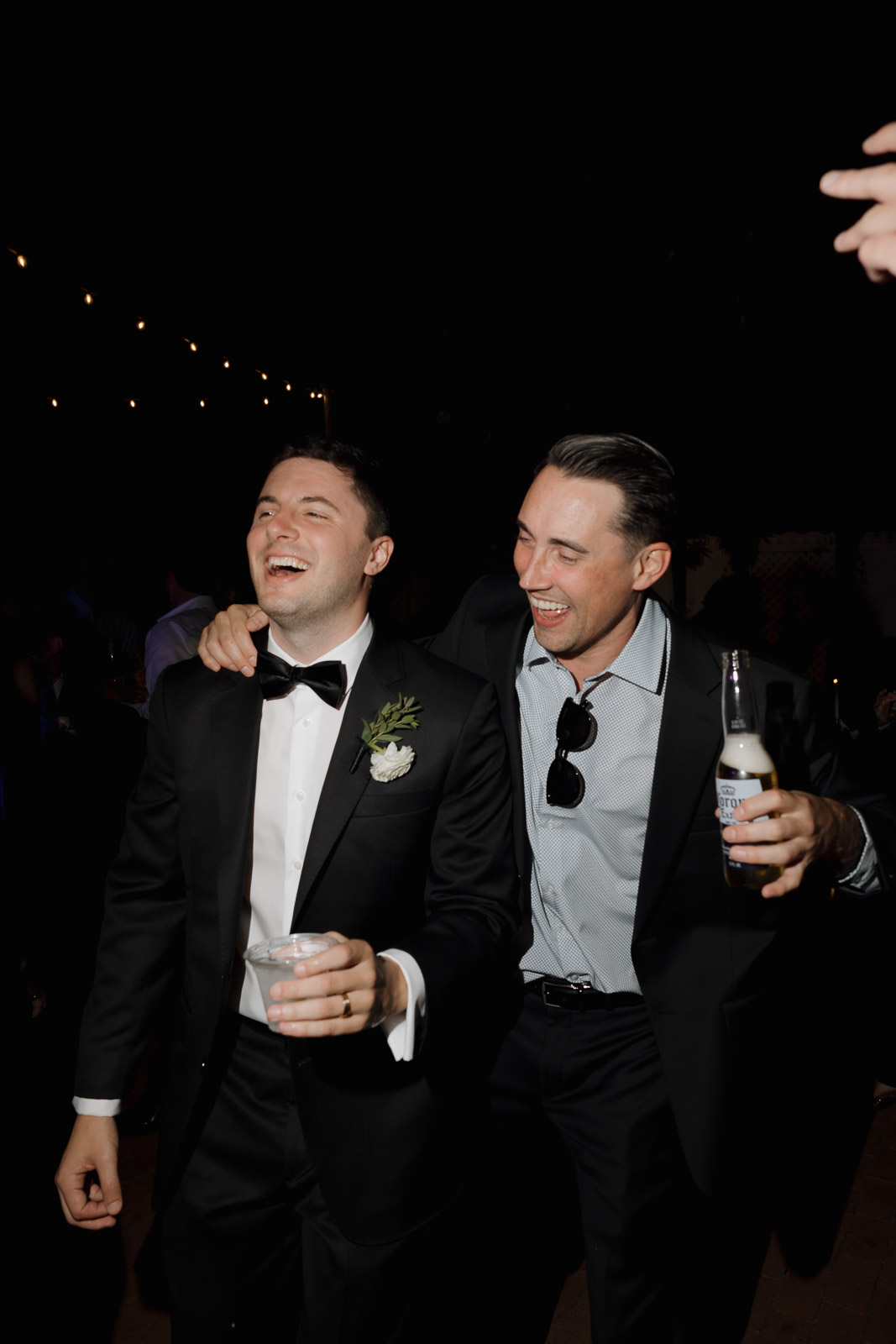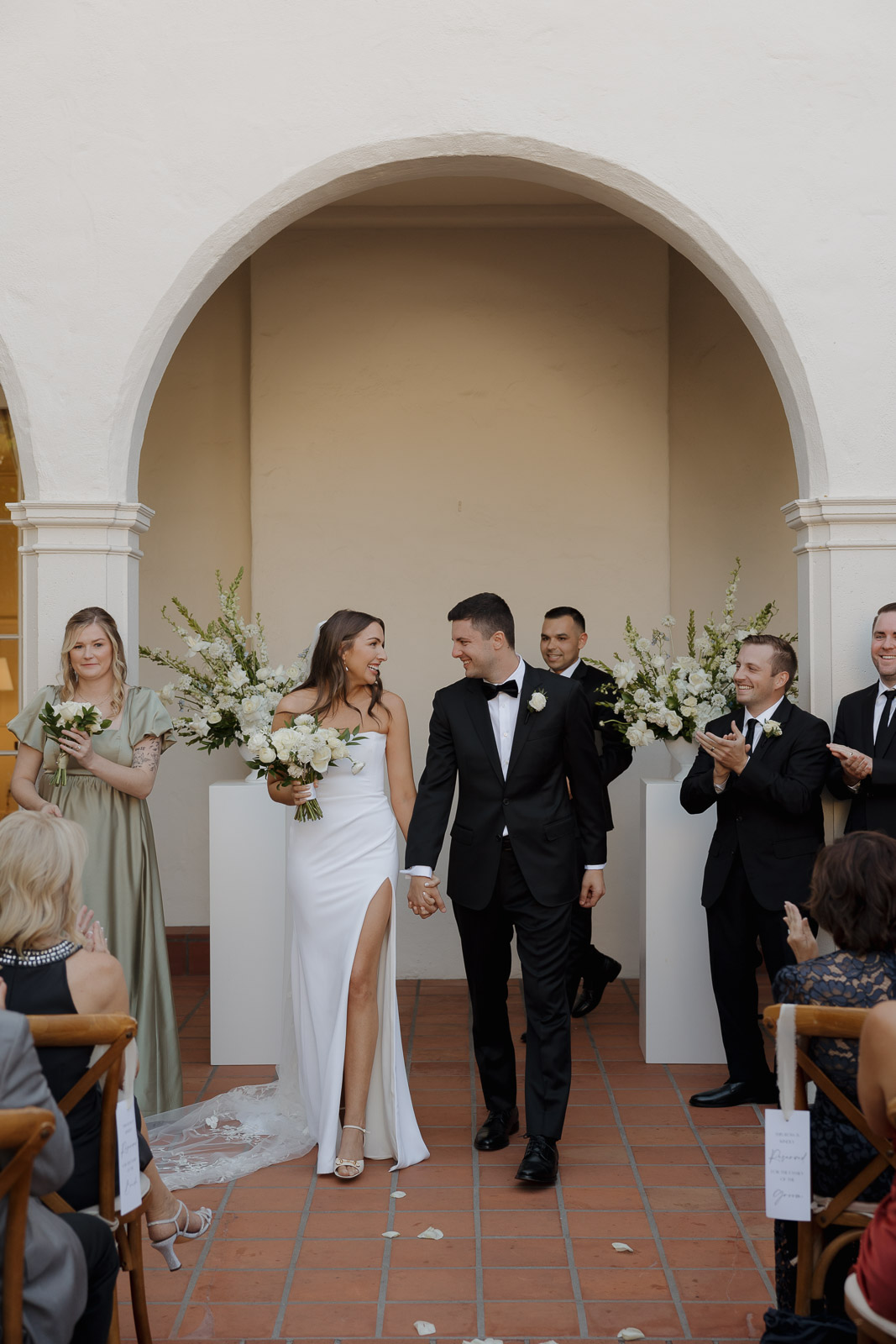 They wanted the day to feel heartfelt and classic, but also full of fun—and it absolutely was. Thoughtful touches celebrated family, like Allison wearing her grandmother’s garter and having their future brother-in-law officiate the ceremony in the romantic garden courtyard. After a tearful ceremony and a quick walk to the beach for some playful sunset portraits, the party officially began.