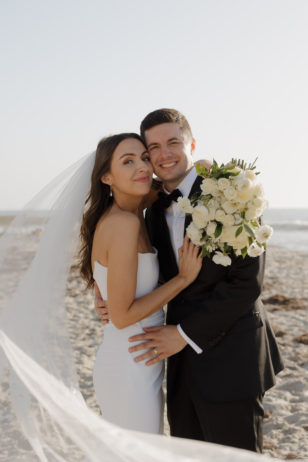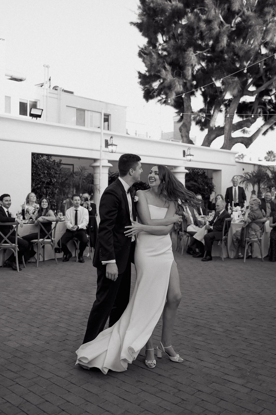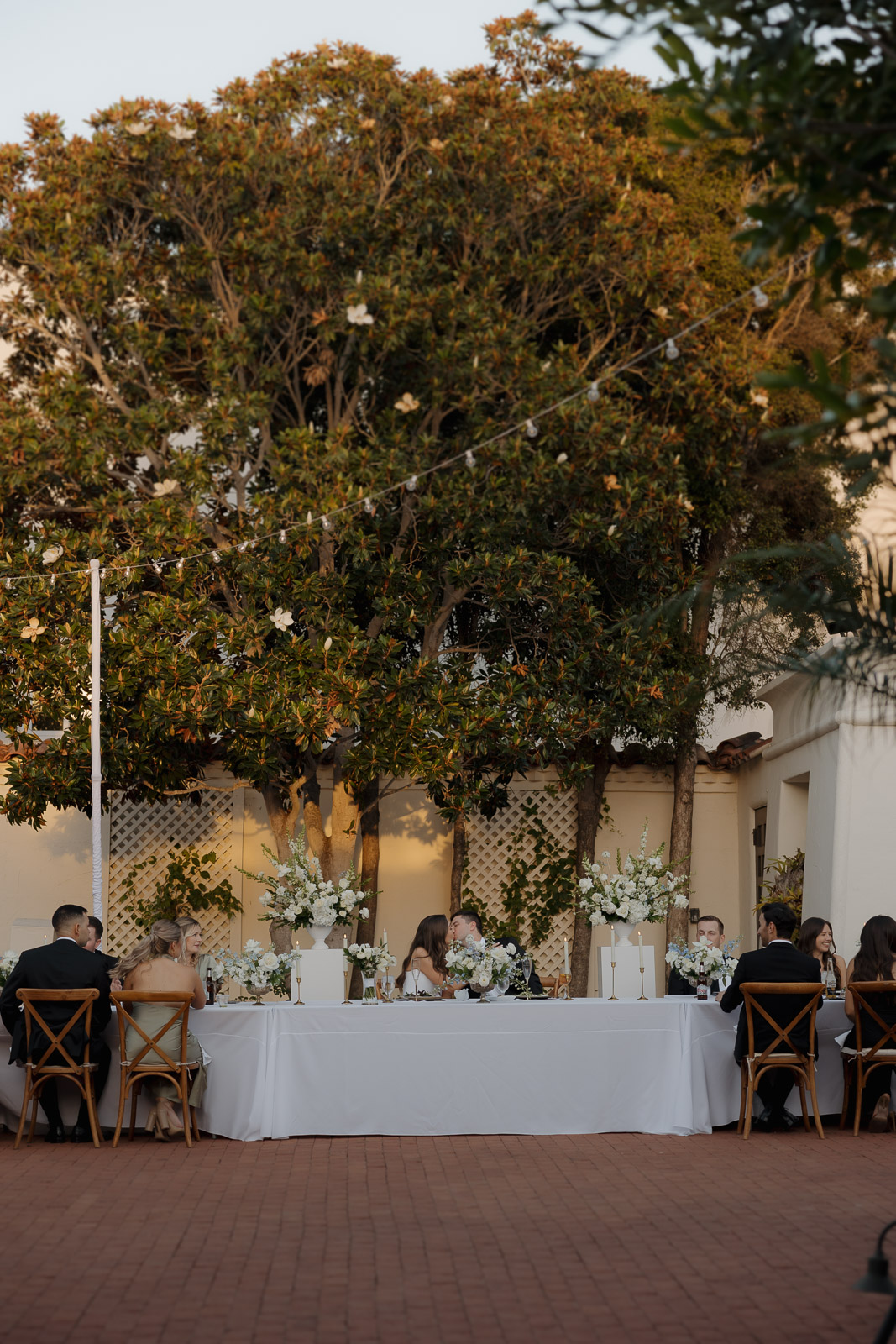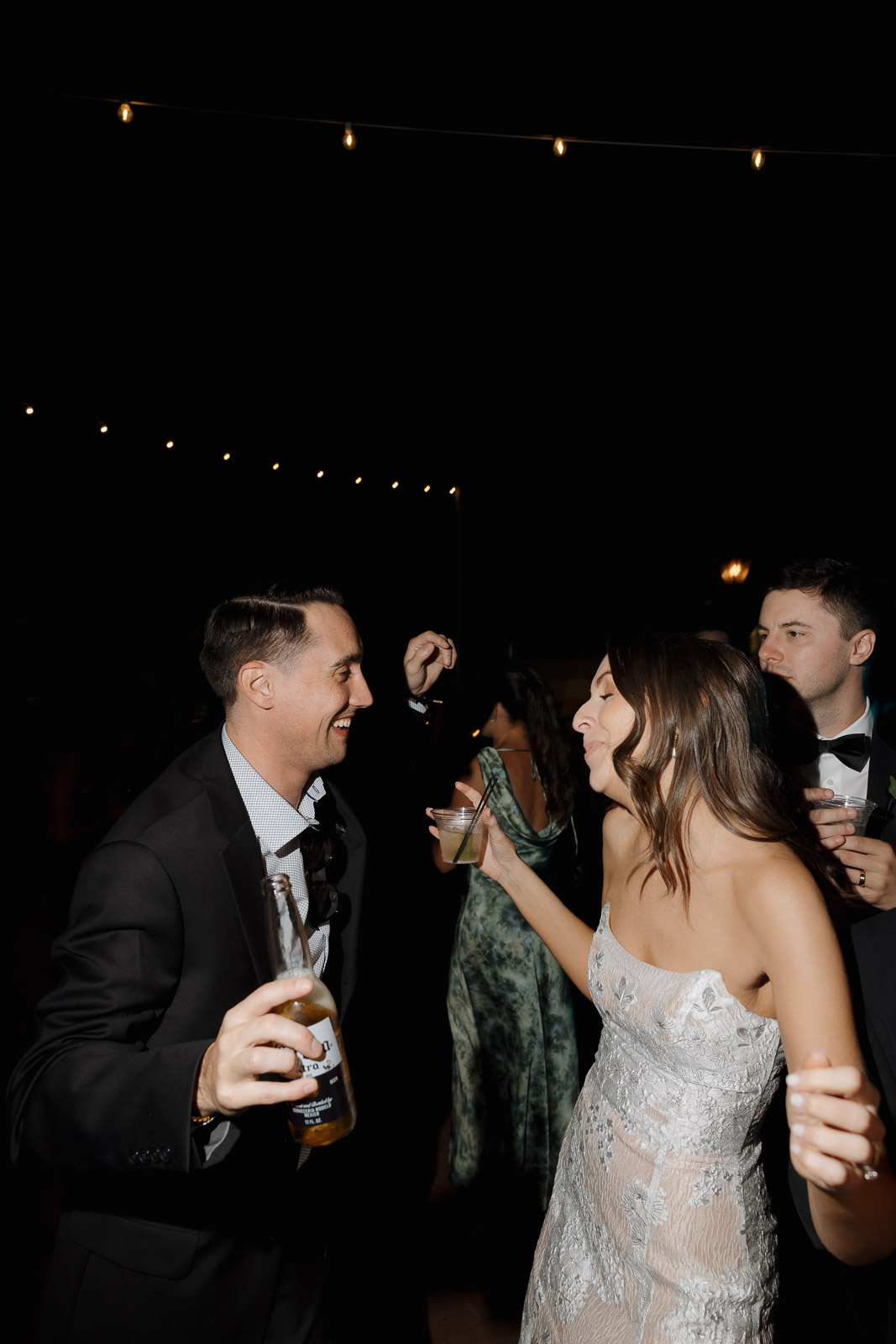 They wanted the day to feel heartfelt and classic, but also full of fun—and it absolutely was. Thoughtful touches celebrated family, like Allison wearing her grandmother’s garter and having their future brother-in-law officiate the ceremony in the romantic garden courtyard. After a tearful ceremony and a quick walk to the beach for some playful sunset portraits, the party officially began.