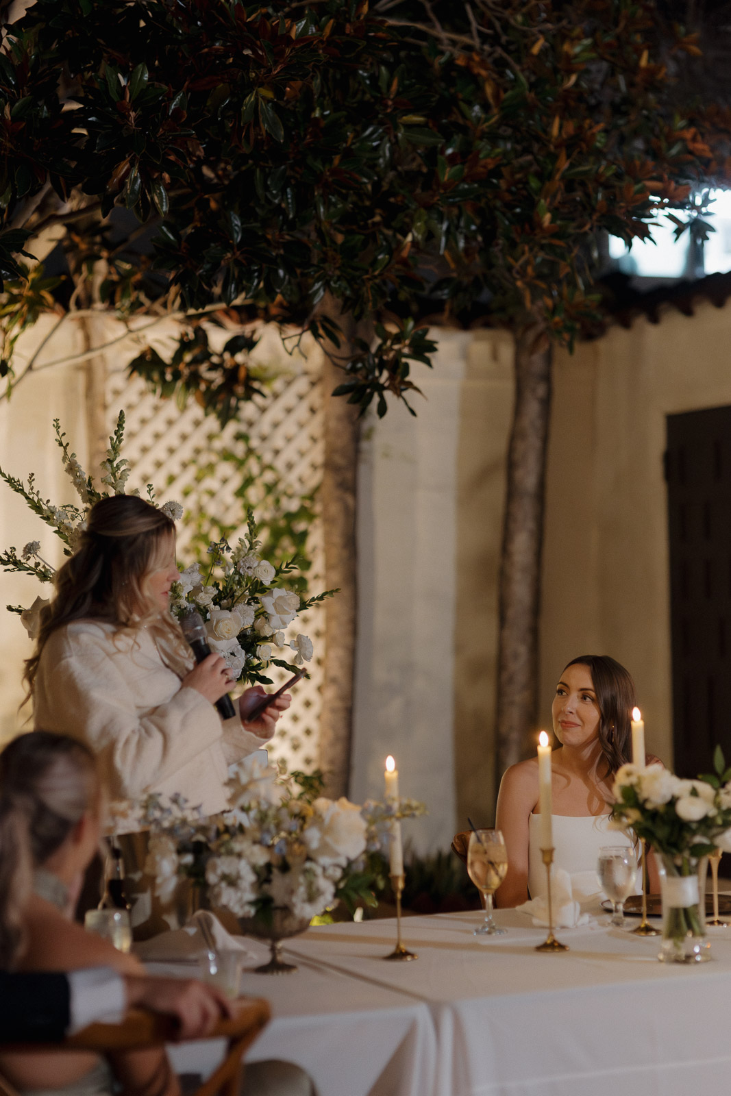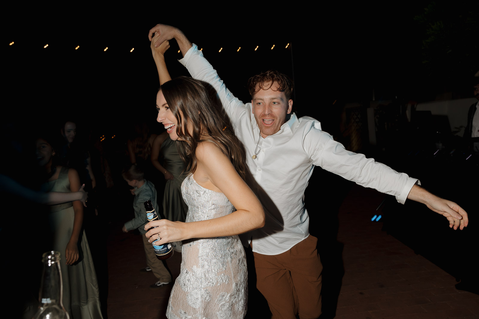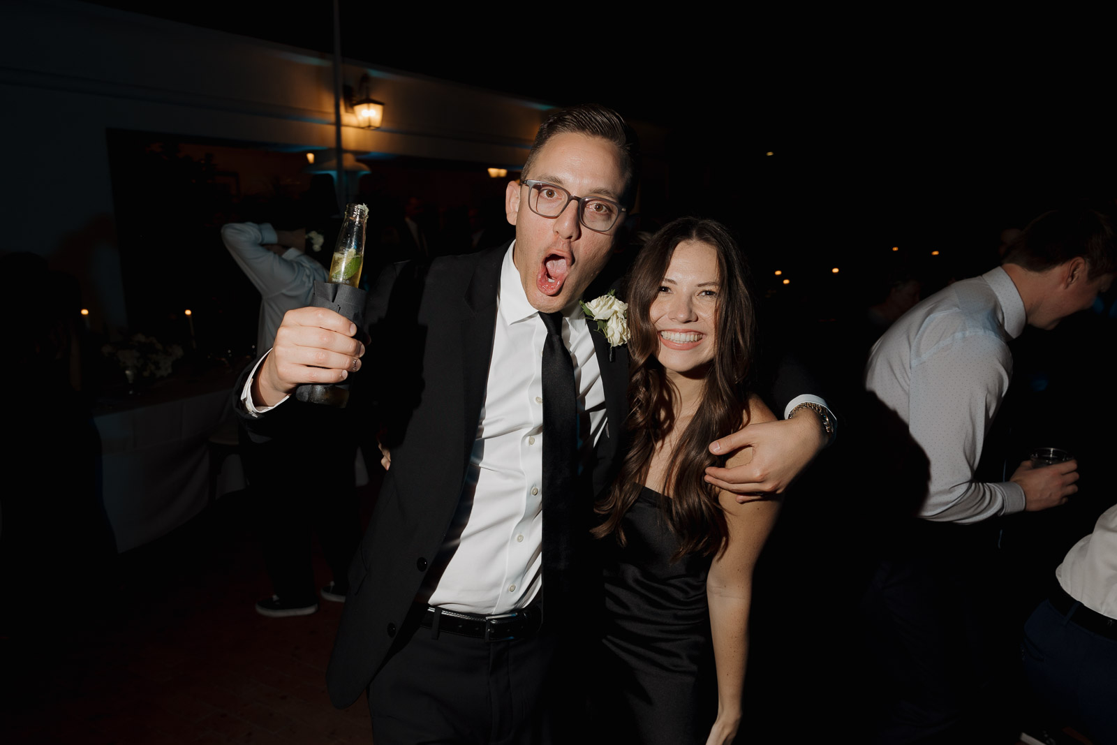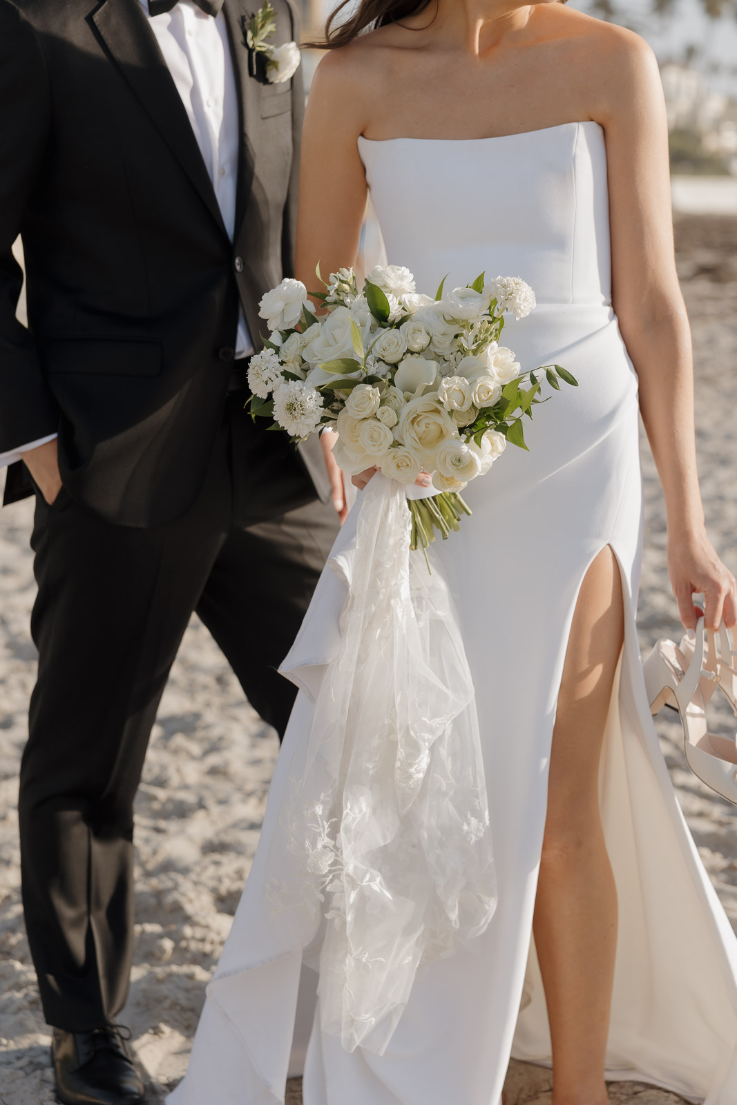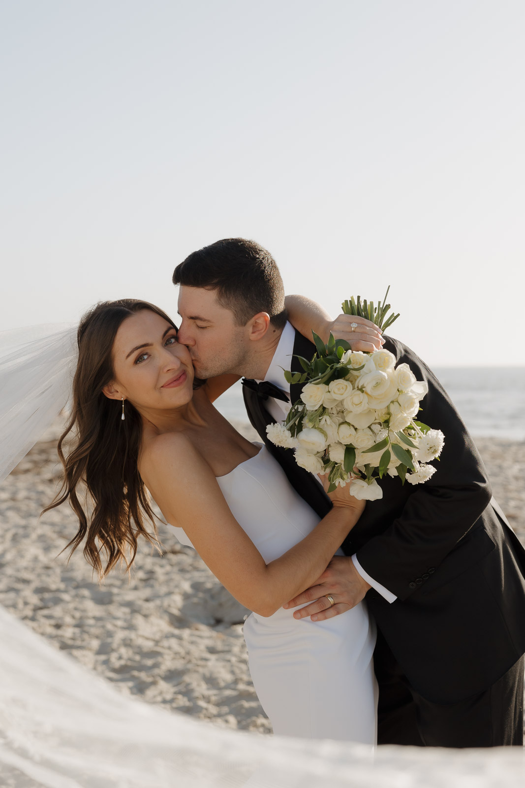 They wanted the day to feel heartfelt and classic, but also full of fun—and it absolutely was. Thoughtful touches celebrated family, like Allison wearing her grandmother’s garter and having their future brother-in-law officiate the ceremony in the romantic garden courtyard. After a tearful ceremony and a quick walk to the beach for some playful sunset portraits, the party officially began.