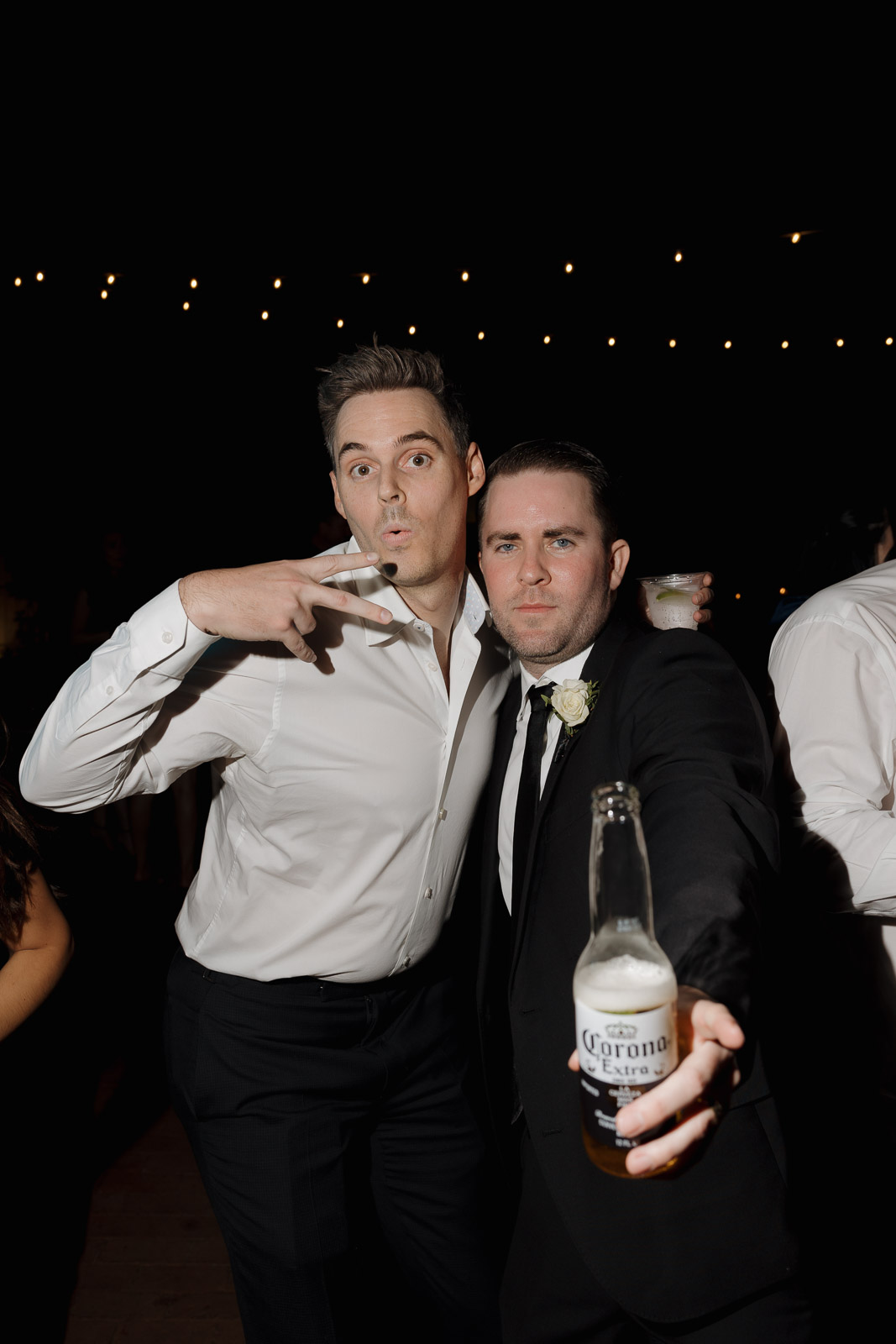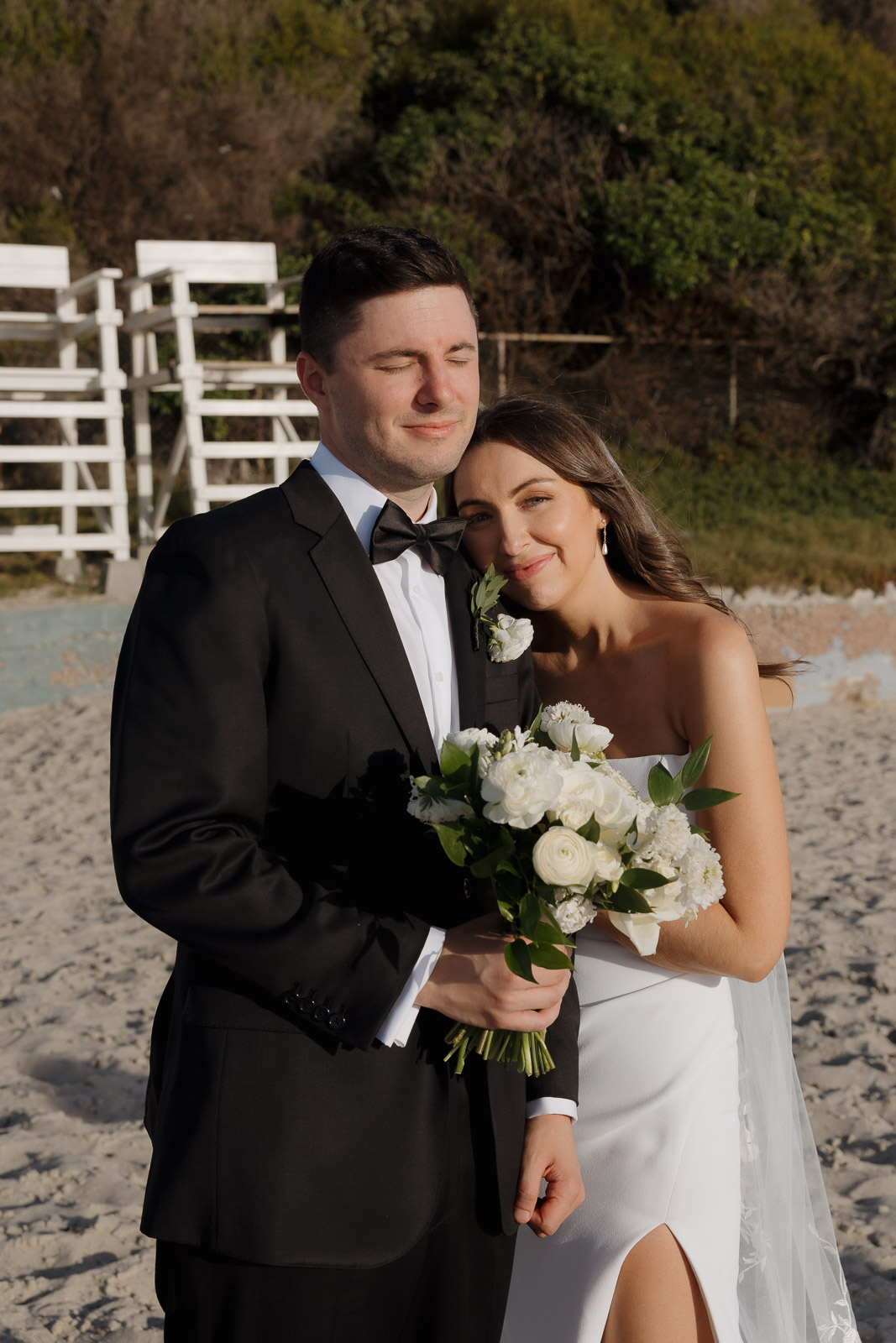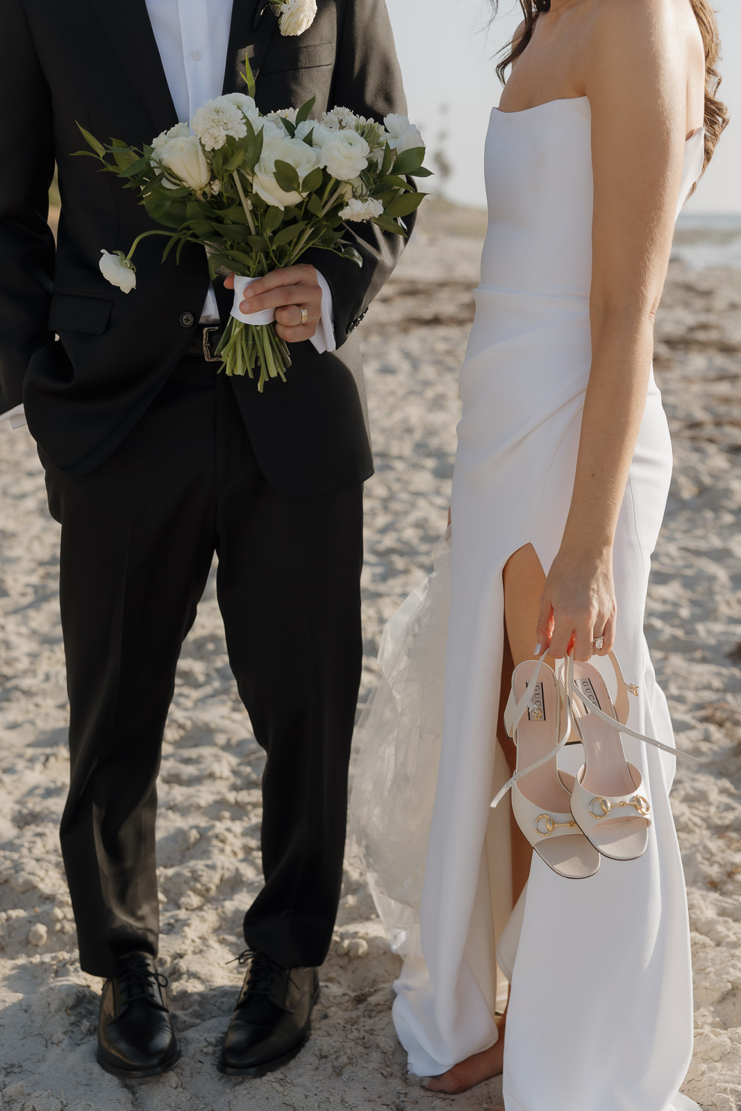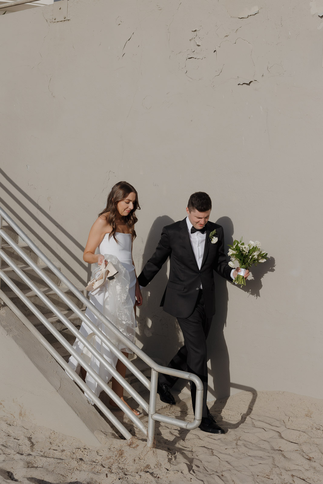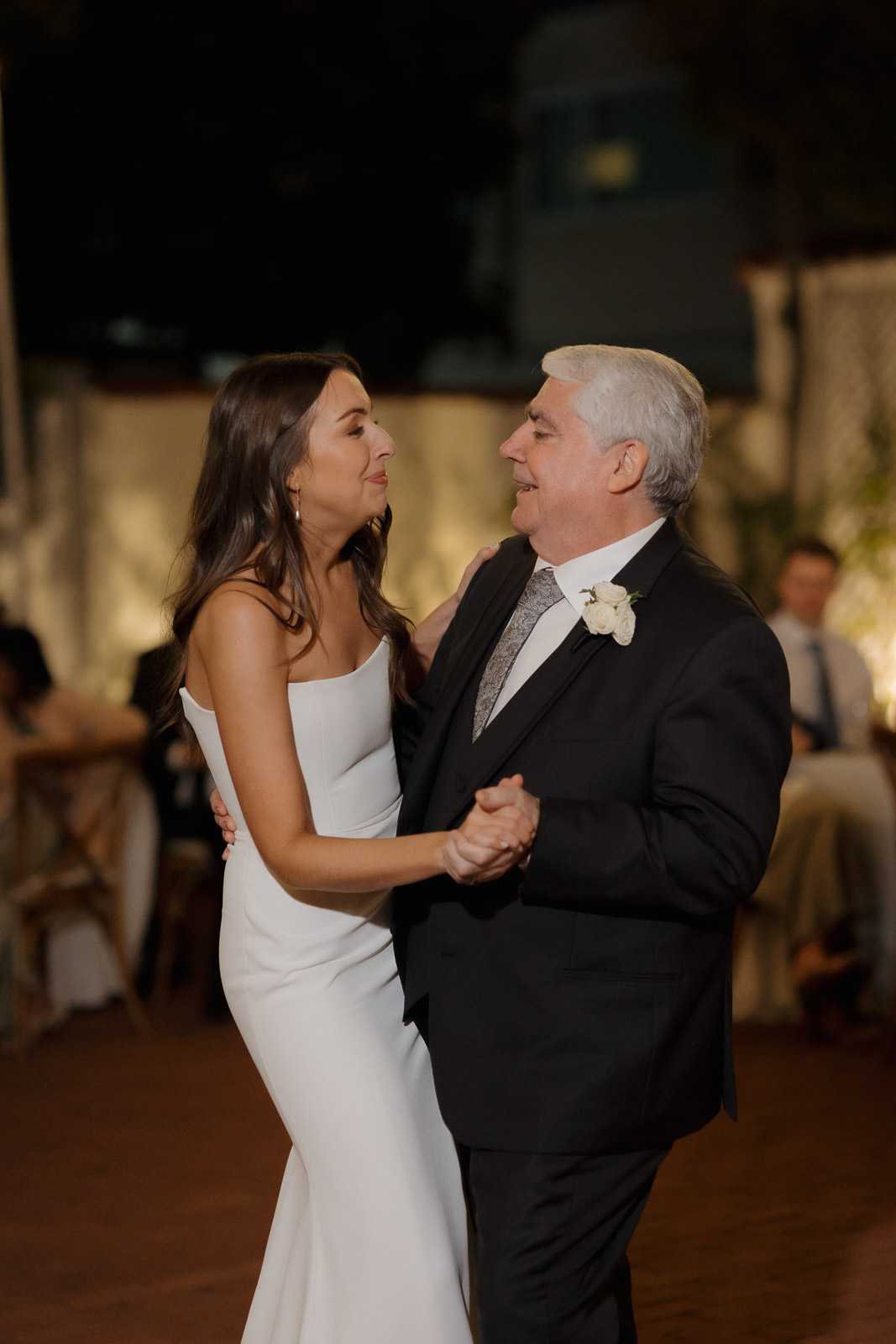 They wanted the day to feel heartfelt and classic, but also full of fun—and it absolutely was. Thoughtful touches celebrated family, like Allison wearing her grandmother’s garter and having their future brother-in-law officiate the ceremony in the romantic garden courtyard. After a tearful ceremony and a quick walk to the beach for some playful sunset portraits, the party officially began.