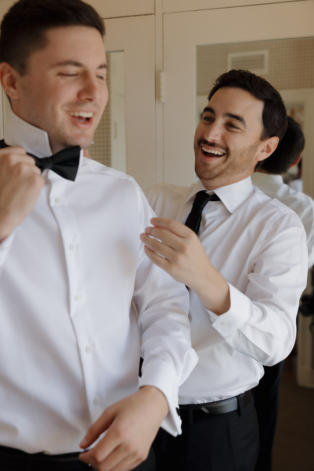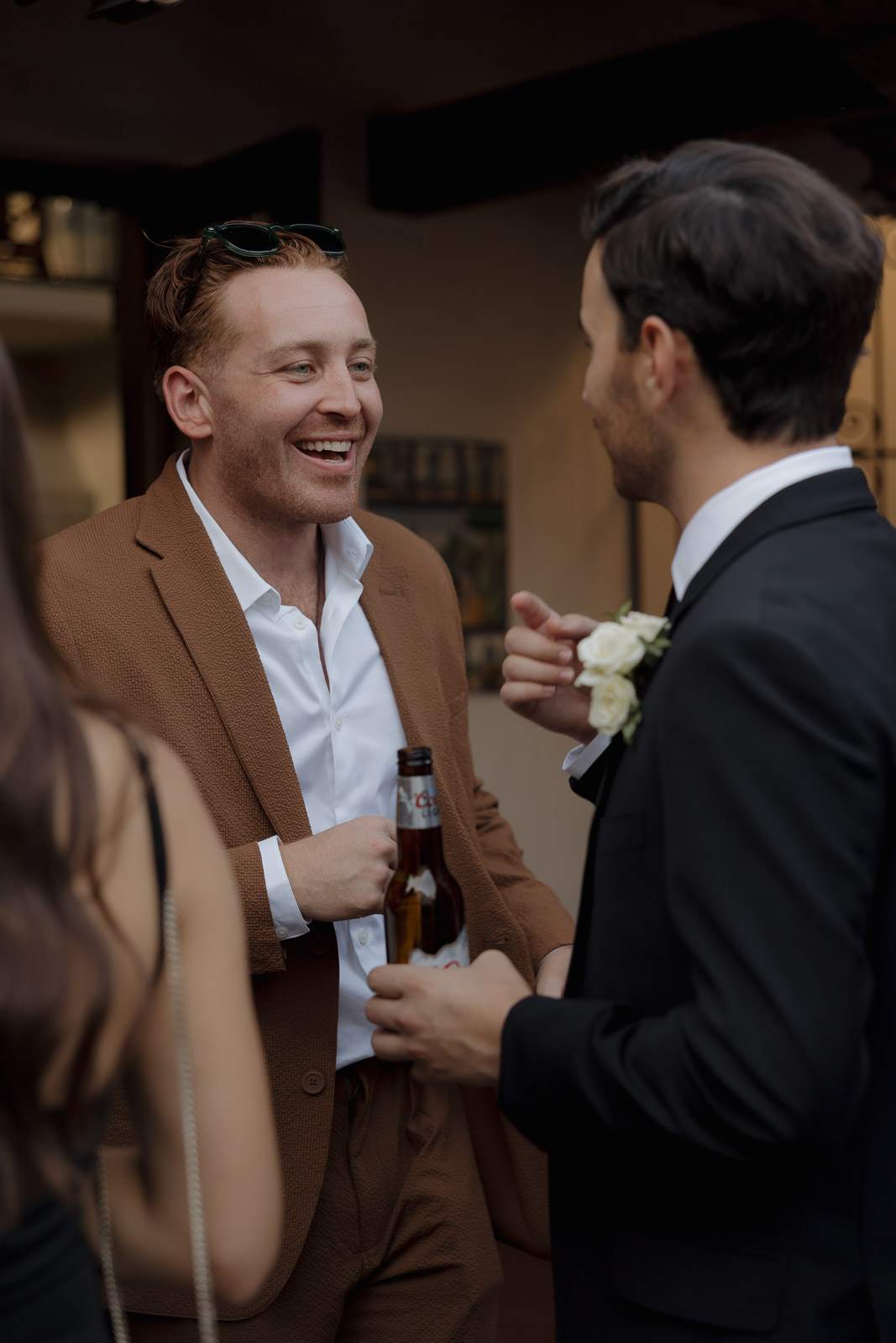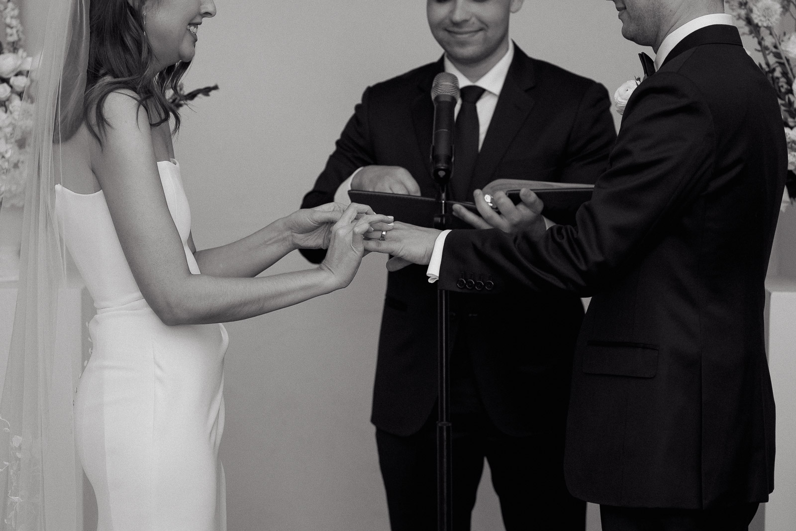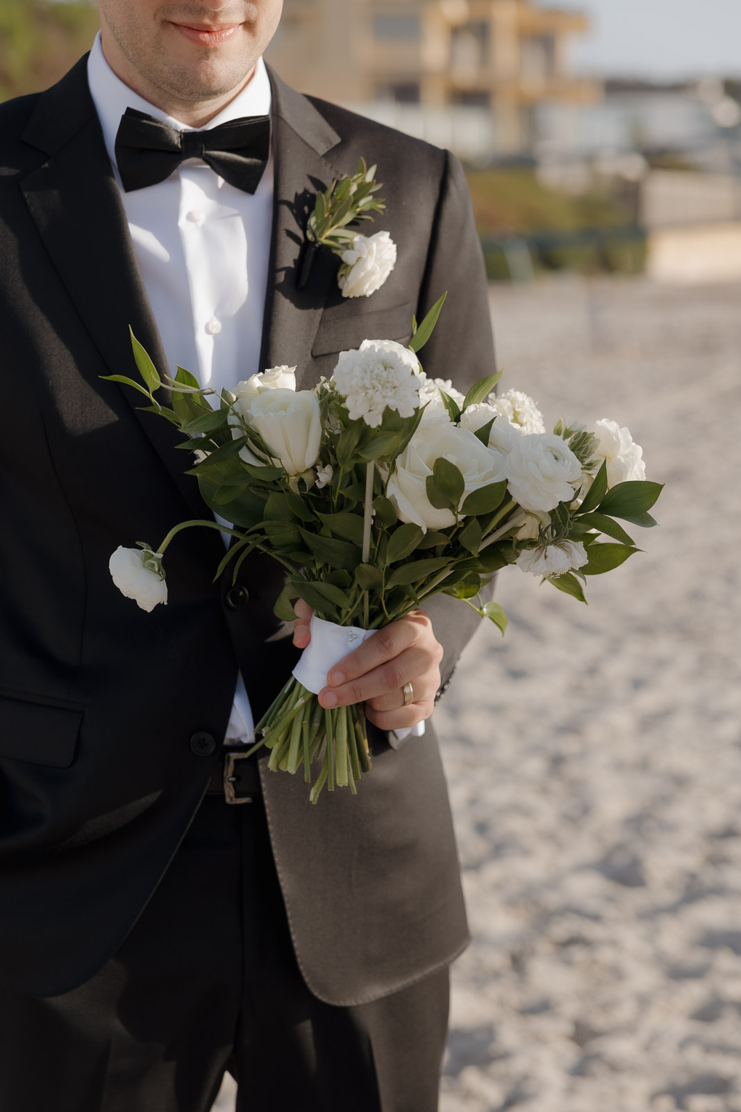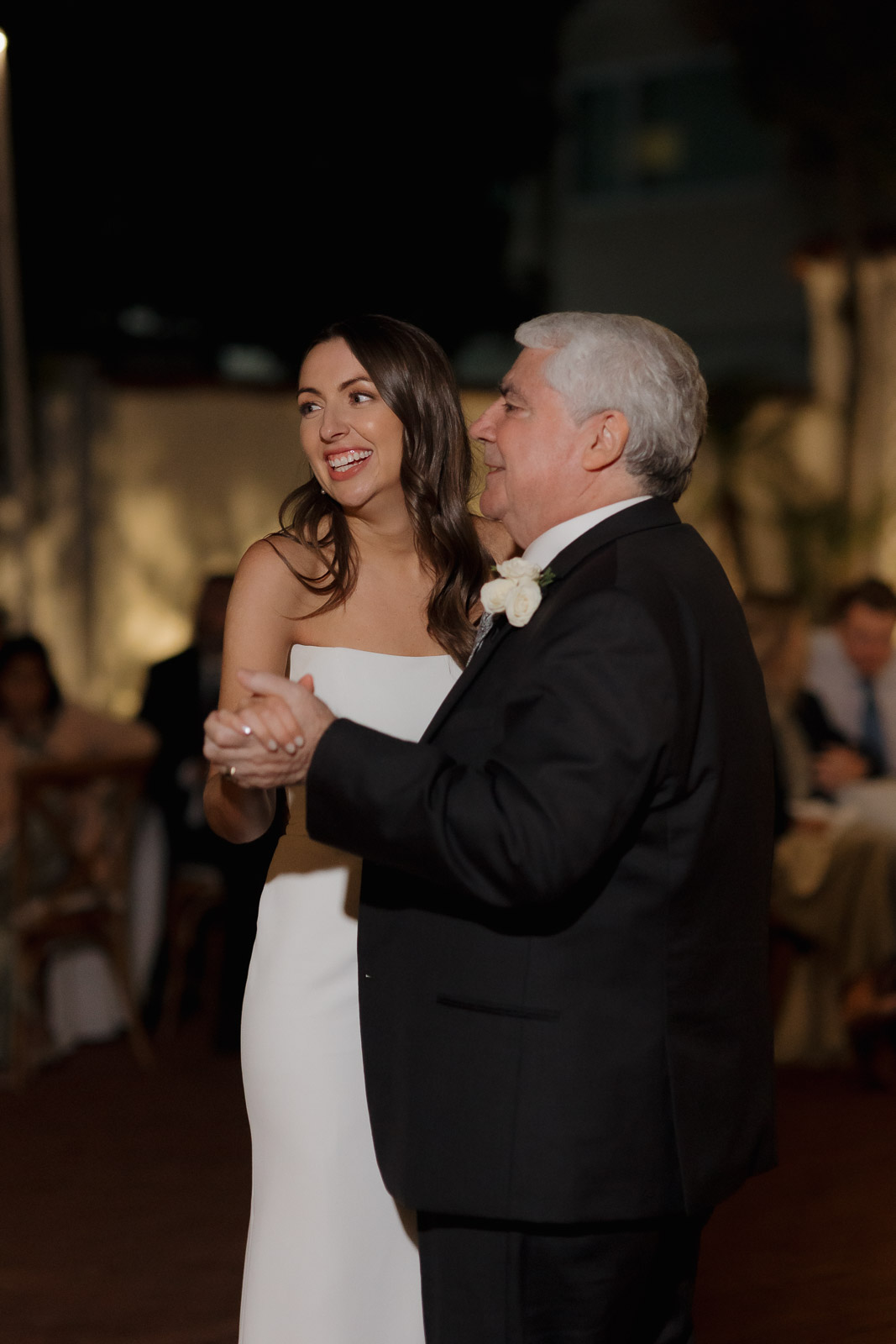 They wanted the day to feel heartfelt and classic, but also full of fun—and it absolutely was. Thoughtful touches celebrated family, like Allison wearing her grandmother’s garter and having their future brother-in-law officiate the ceremony in the romantic garden courtyard. After a tearful ceremony and a quick walk to the beach for some playful sunset portraits, the party officially began.
