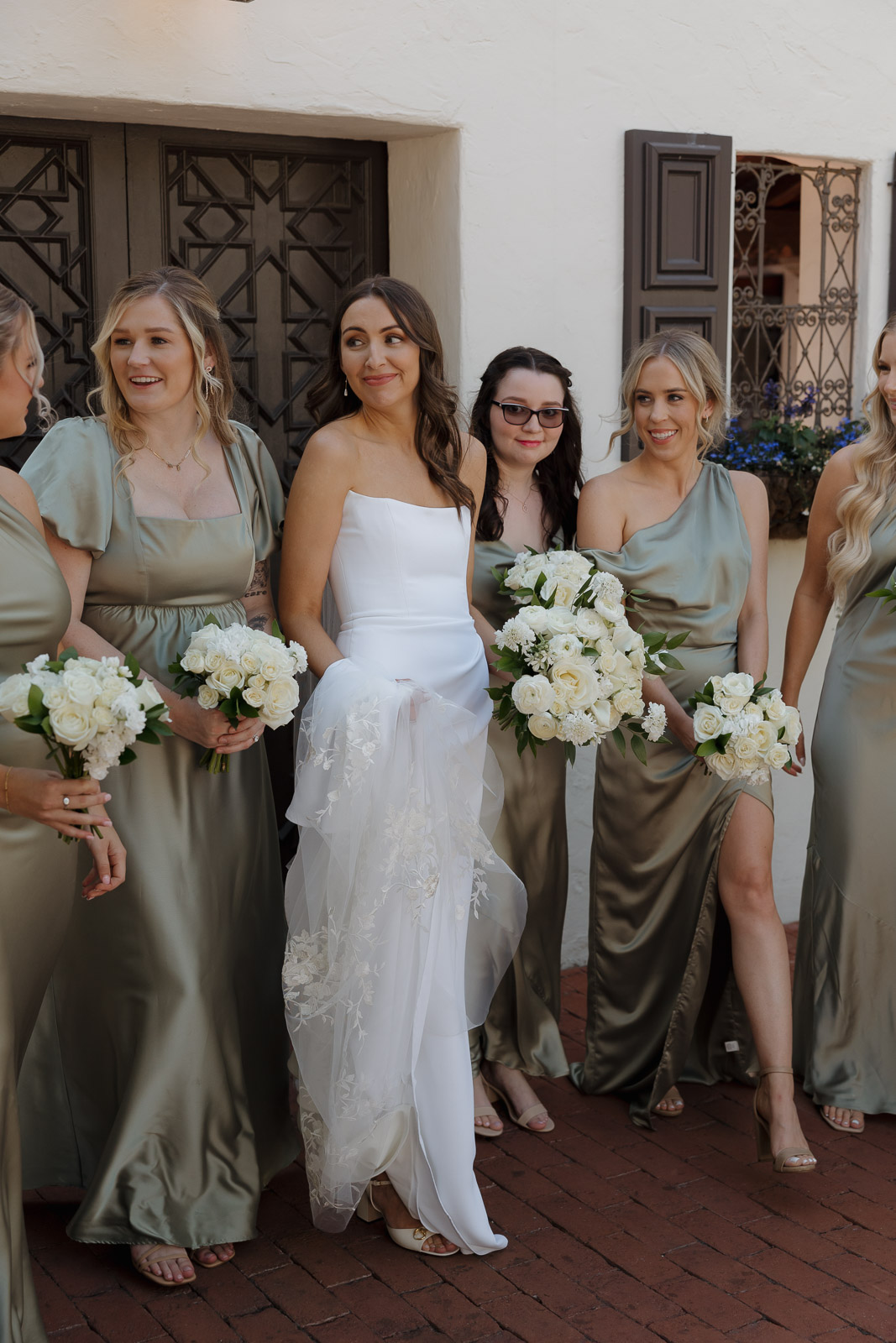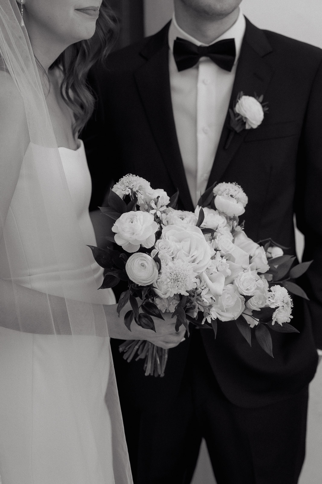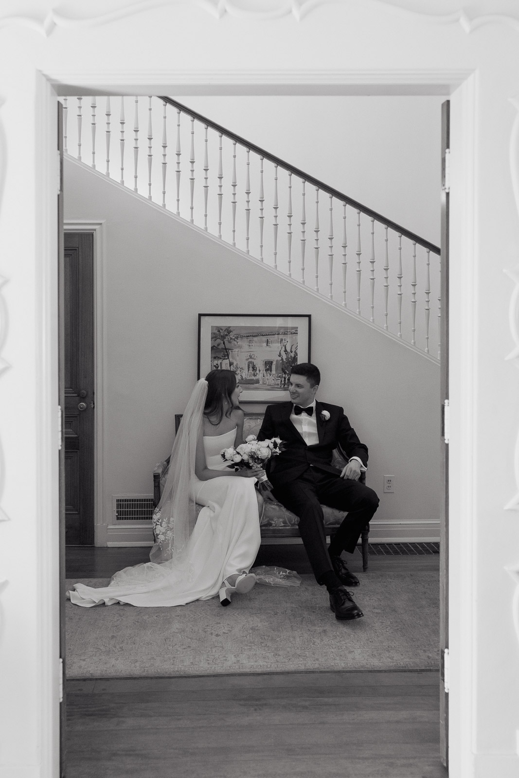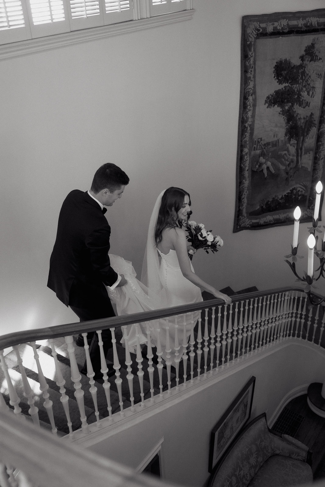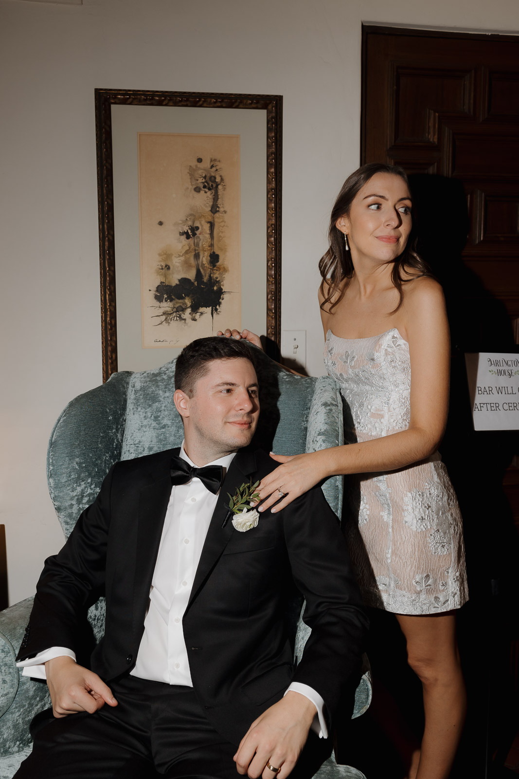 Darlington House’s natural, classic beauty provided the perfect backdrop for the timeless theme Allison envisioned for their wedding day. To bring this vision to life, they chose all white florals accented with soft, natural hues—light sage satin dresses for the bridesmaids, timeless black suits for the groomsmen, and dainty blue flowers scattered amongst the white roses and ranunculus. The architecture of the house and the surrounding gardens complemented the minimalistic elegance of the decor, making every photo feel like it belonged in a storybook. There’s a reason this is my favorite venue to shoot at!