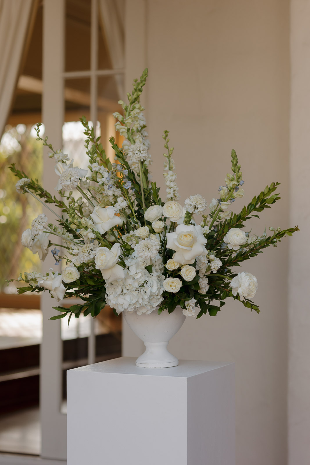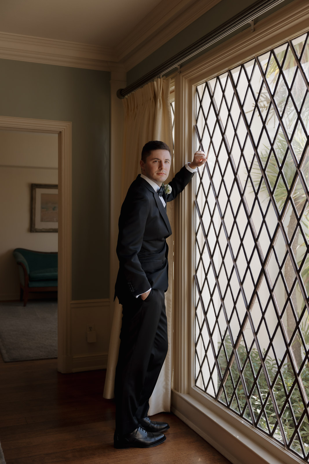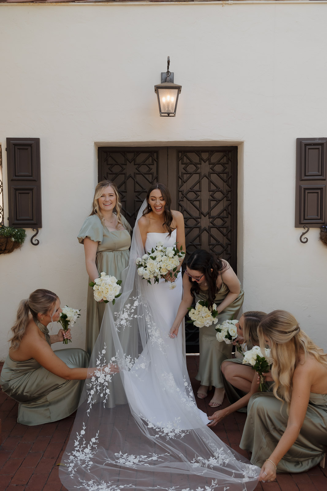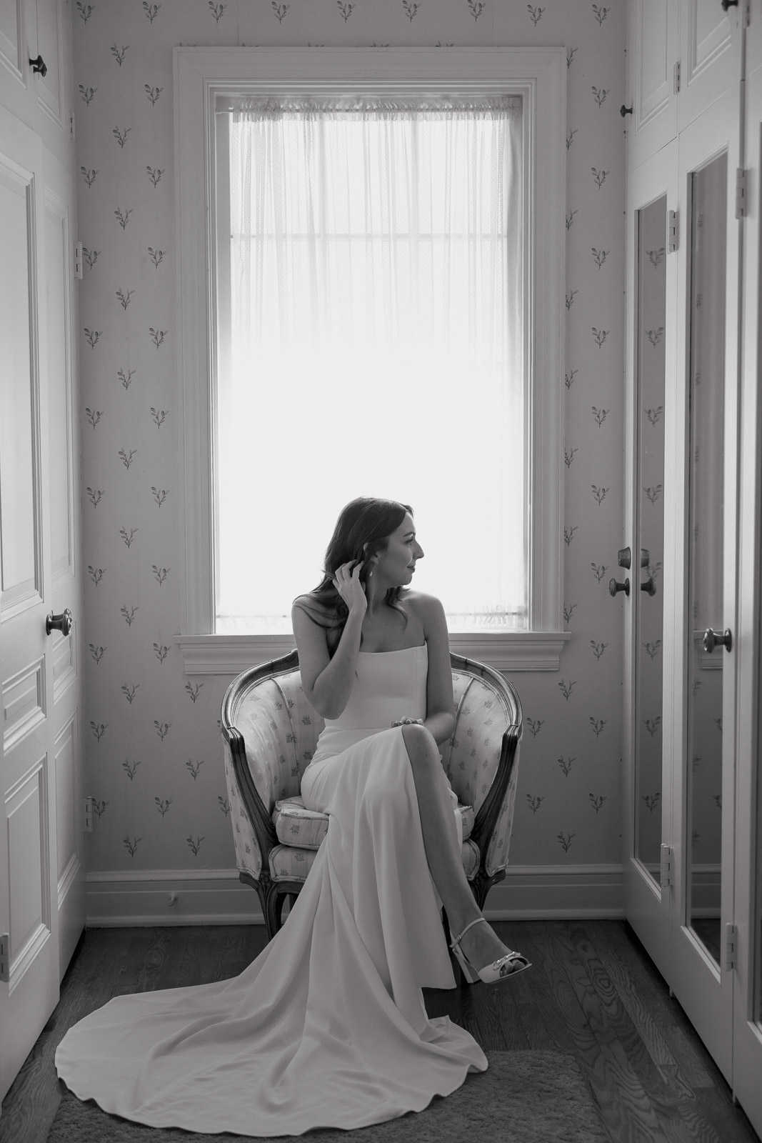 Darlington House’s natural, classic beauty provided the perfect backdrop for the timeless theme Allison envisioned for their wedding day. To bring this vision to life, they chose all white florals accented with soft, natural hues—light sage satin dresses for the bridesmaids, timeless black suits for the groomsmen, and dainty blue flowers scattered amongst the white roses and ranunculus. The architecture of the house and the surrounding gardens complemented the minimalistic elegance of the decor, making every photo feel like it belonged in a storybook. There’s a reason this is my favorite venue to shoot at!