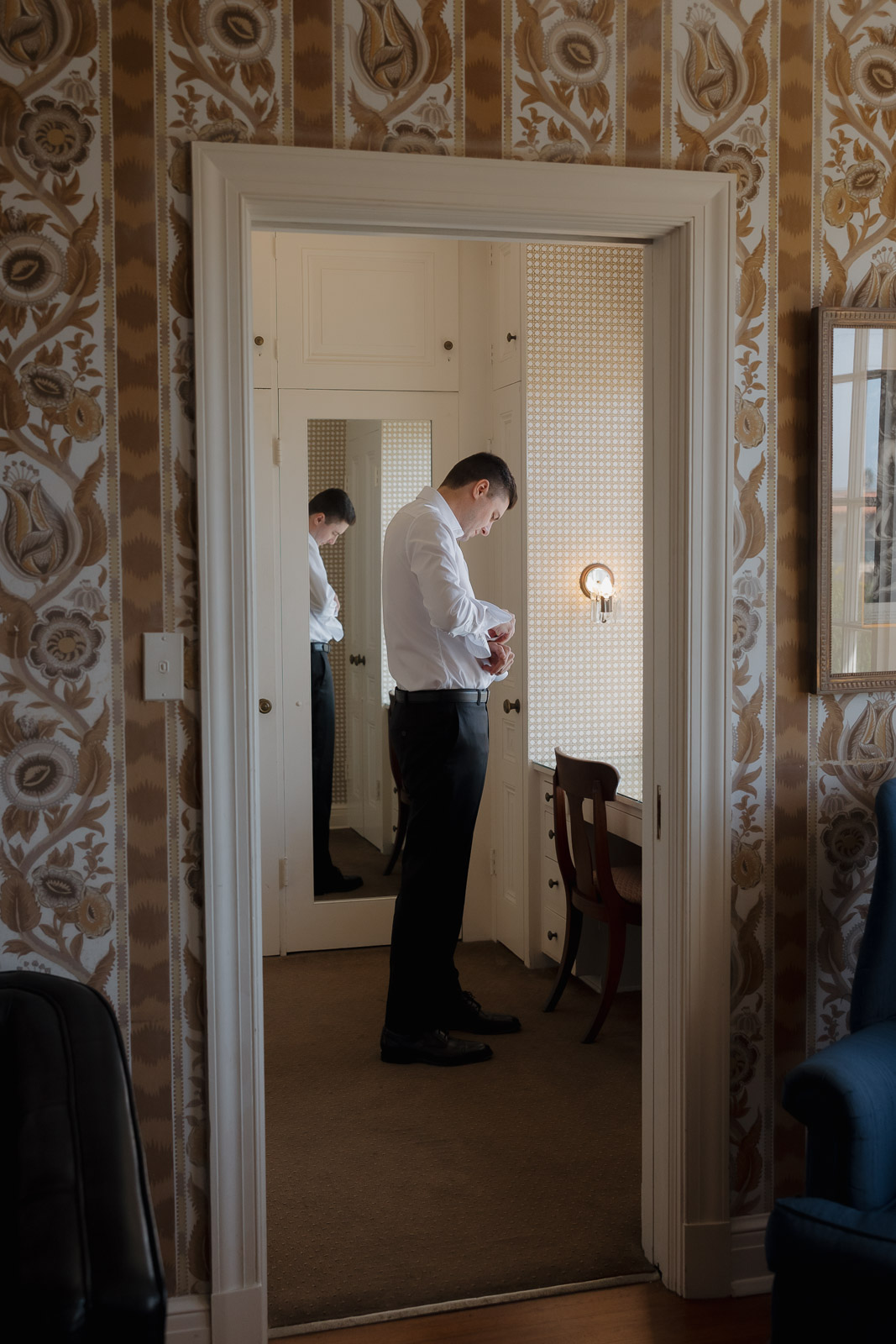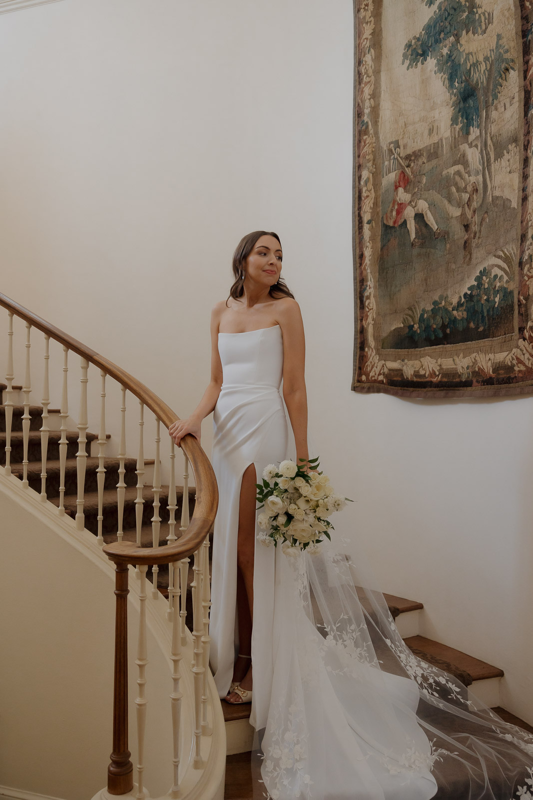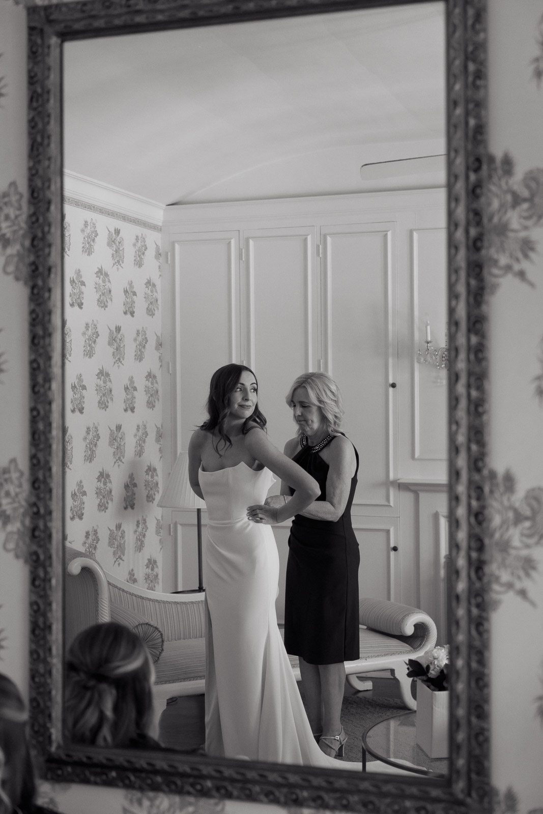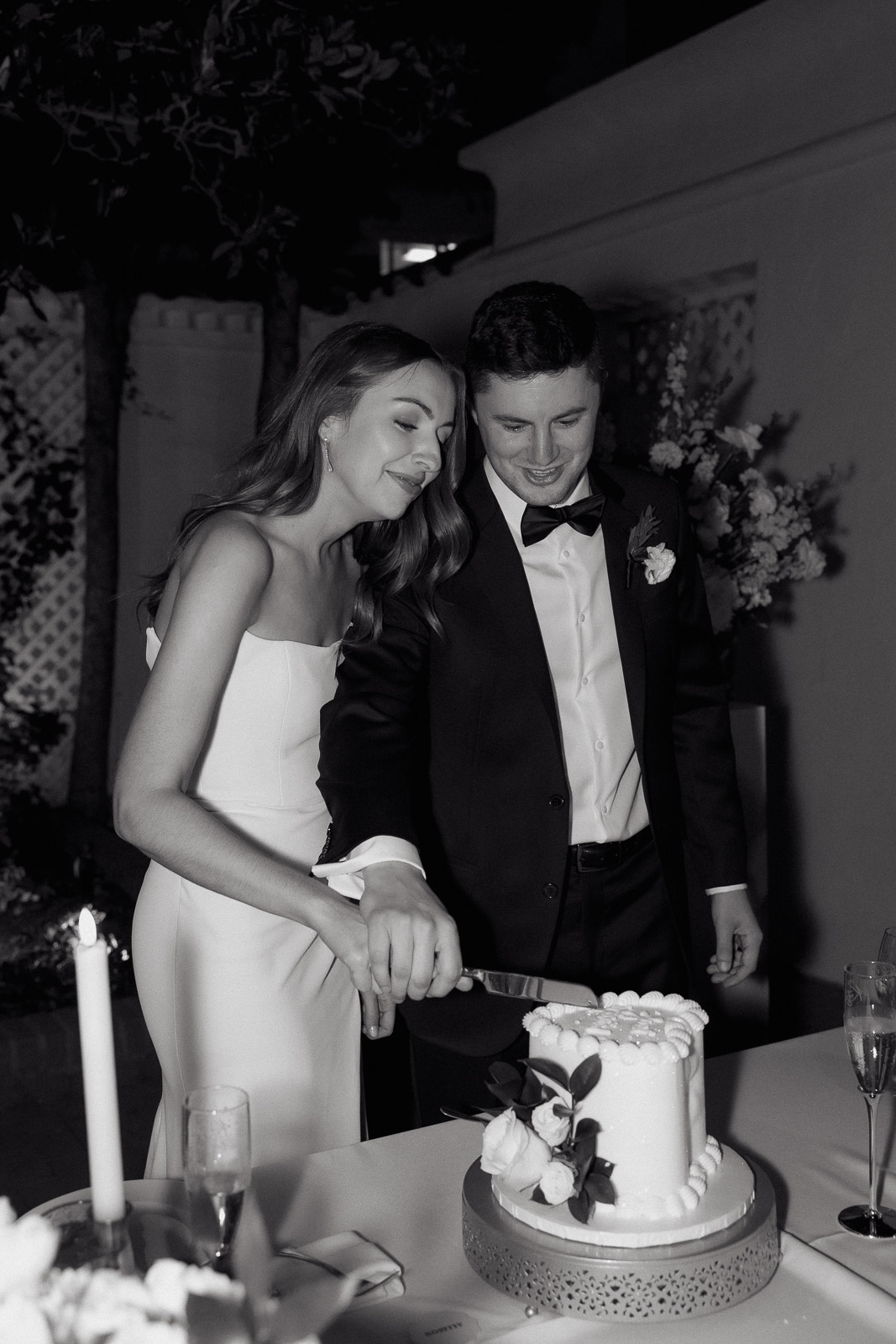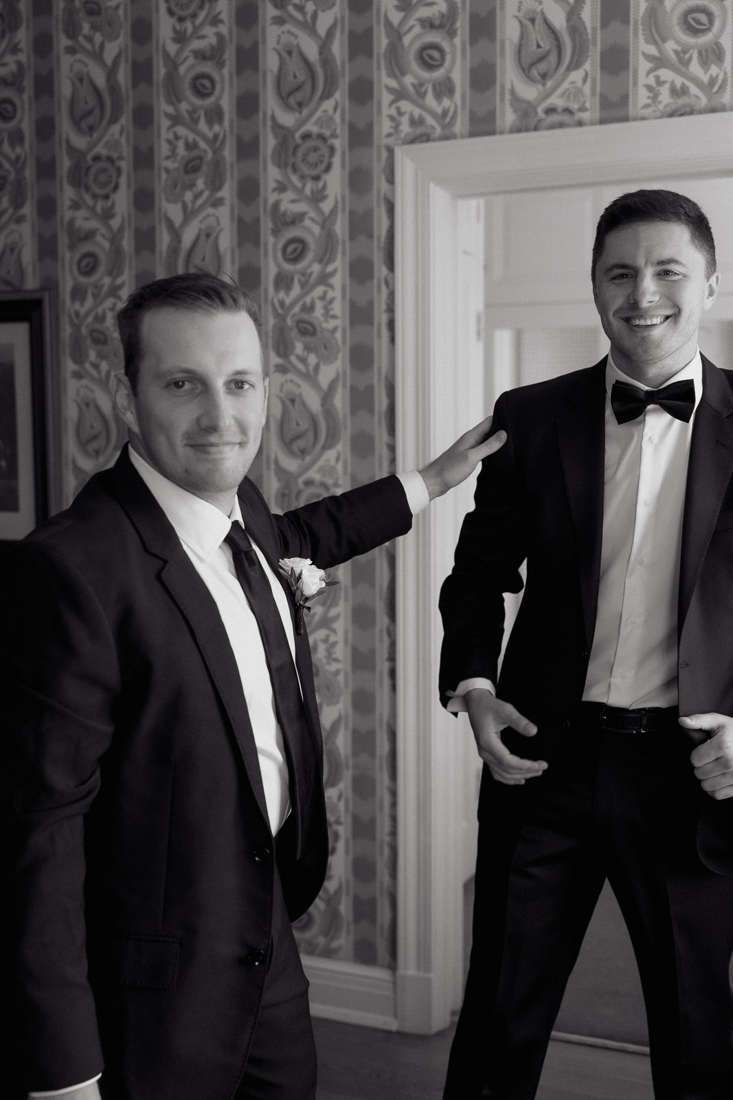 Darlington House’s natural, classic beauty provided the perfect backdrop for the timeless theme Allison envisioned for their wedding day. To bring this vision to life, they chose all white florals accented with soft, natural hues—light sage satin dresses for the bridesmaids, timeless black suits for the groomsmen, and dainty blue flowers scattered amongst the white roses and ranunculus. The architecture of the house and the surrounding gardens complemented the minimalistic elegance of the decor, making every photo feel like it belonged in a storybook. There’s a reason this is my favorite venue to shoot at!